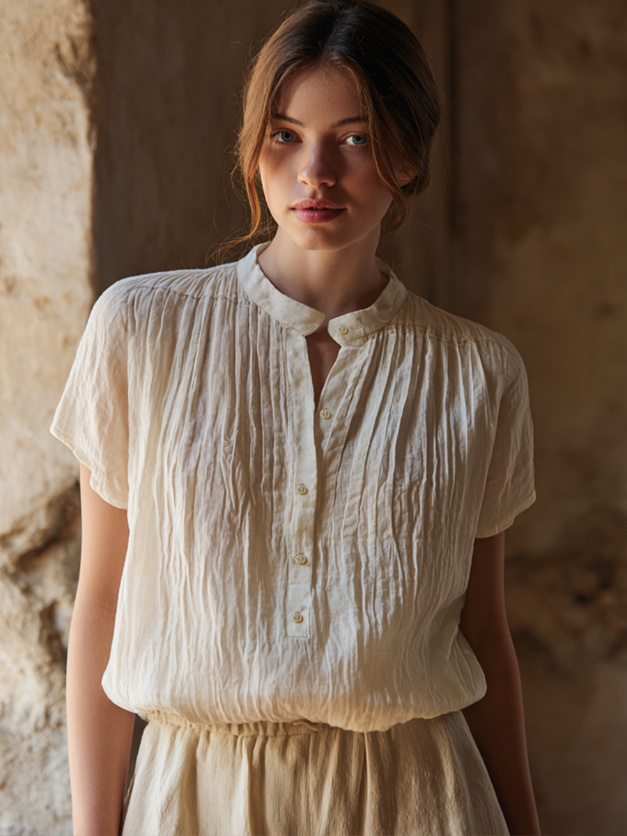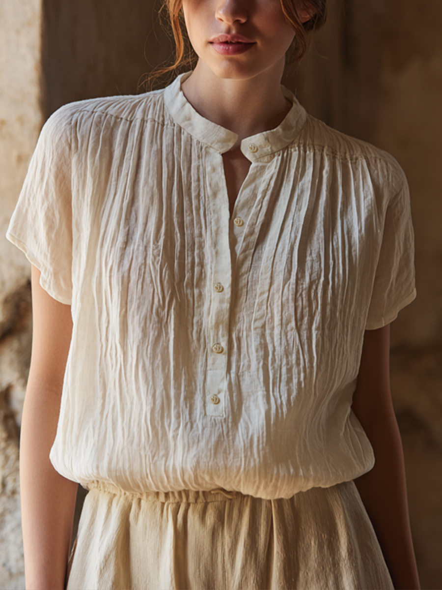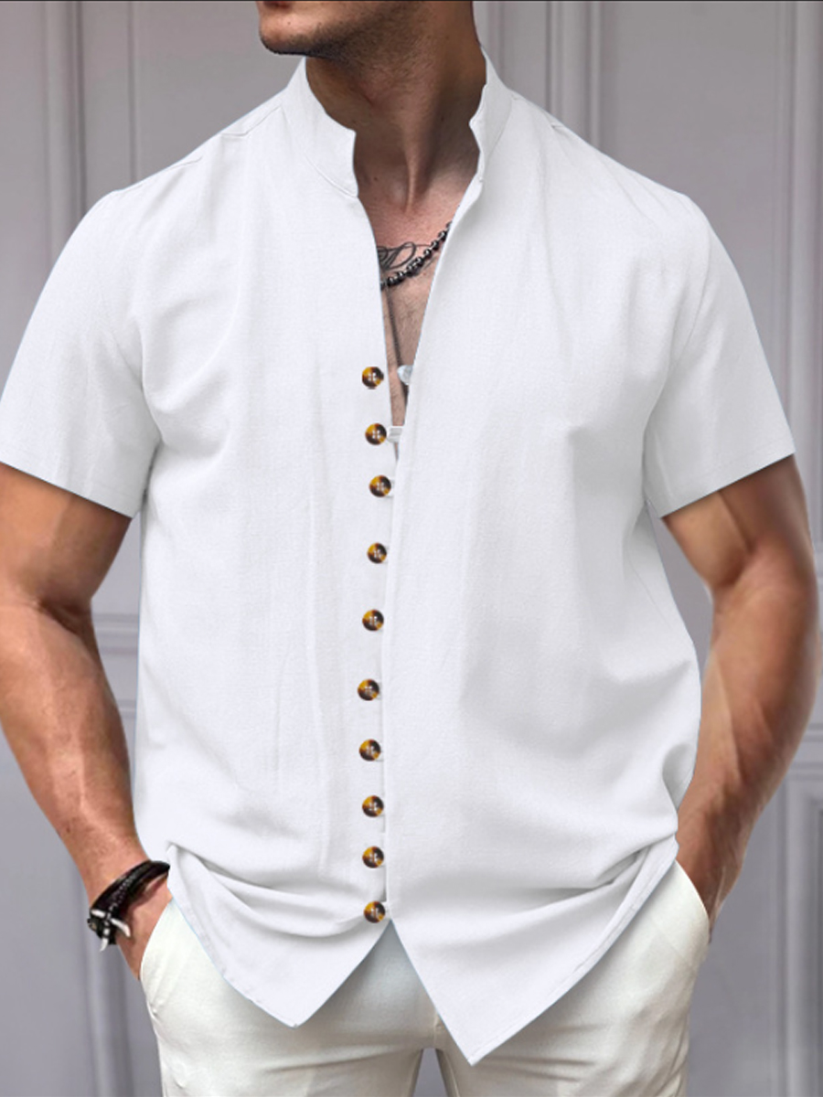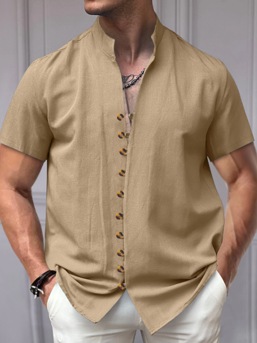 Herren-Shirt im Vintage-Stil aus Baumwolle und Leinen mit kurzen Ärmeln$44.99 USD$81.68 USD