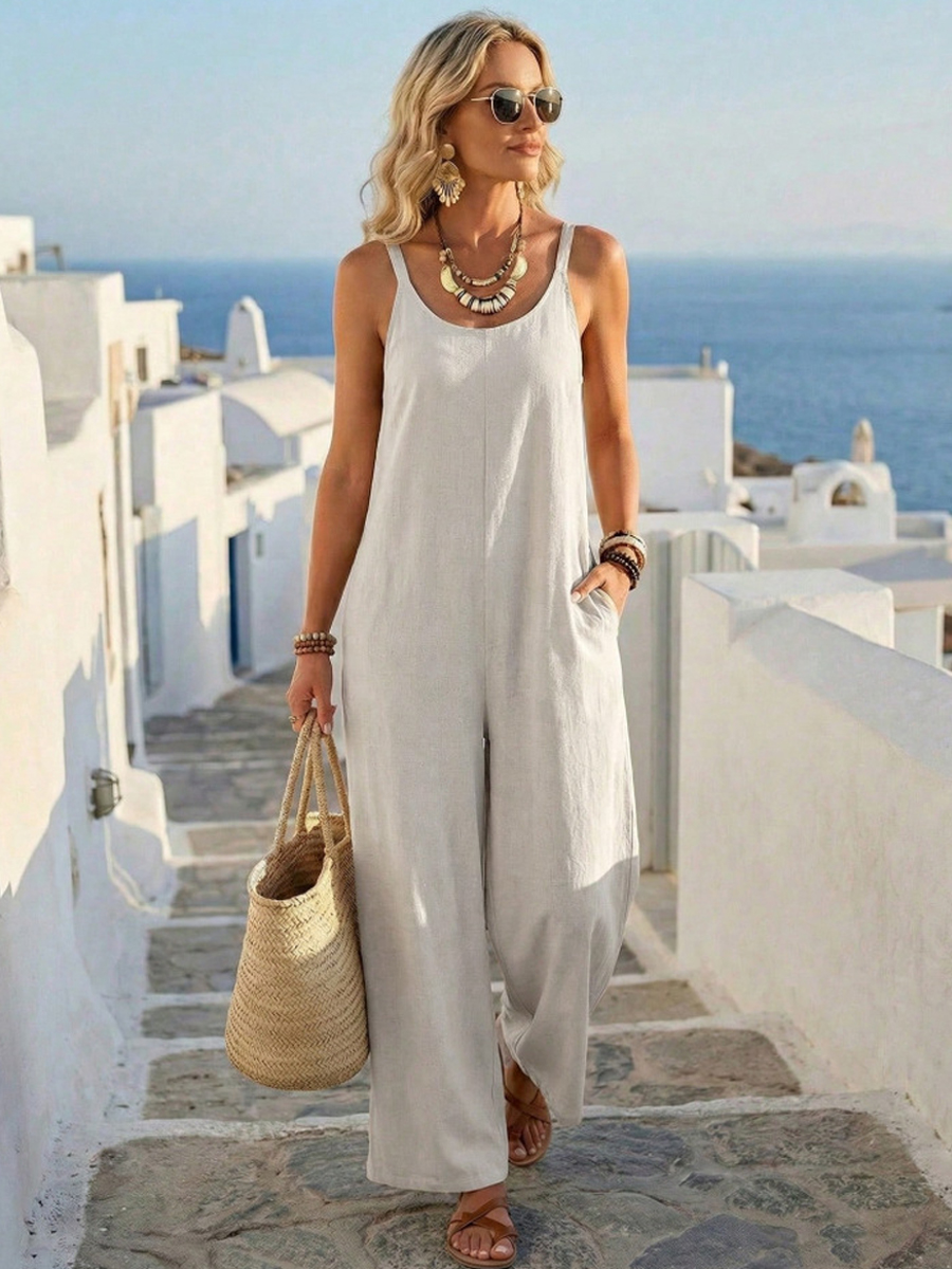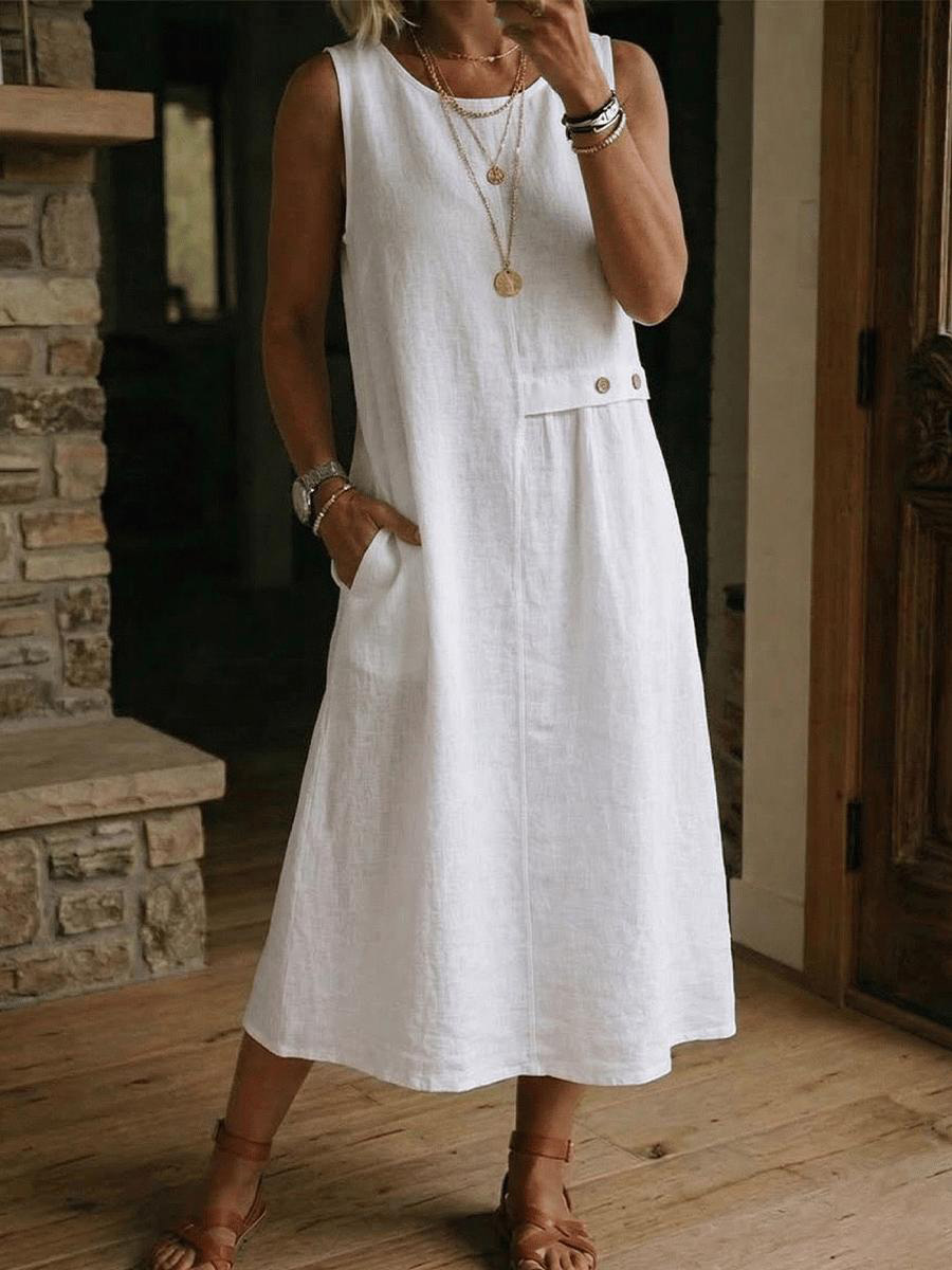 Damenkleid aus Baumwolle und Leinen in schlichter Uni-Farbe, ärmellos$49.99 USD$92.42 USD