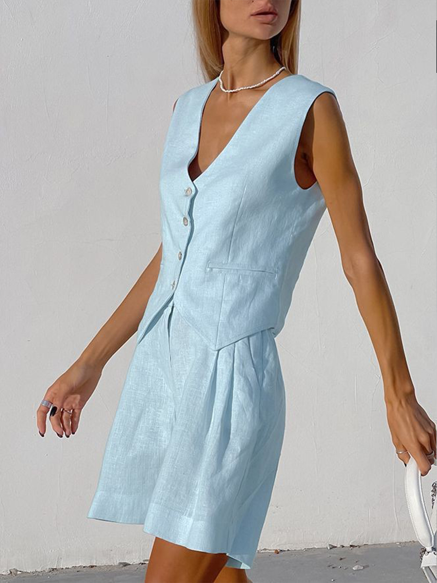 Einfaches Einfarbiges Leinen-Set für Damen$45.99 USD$106.04 USD