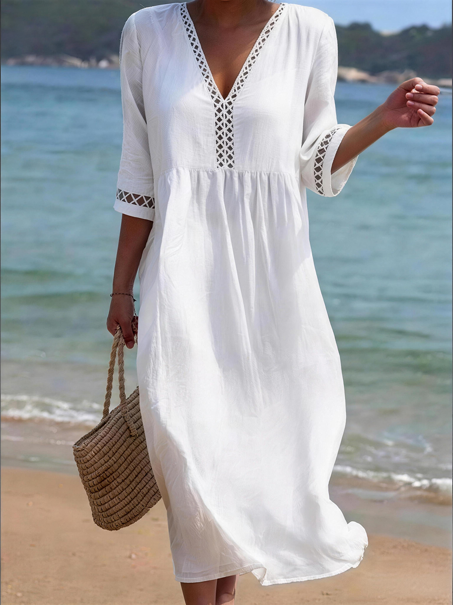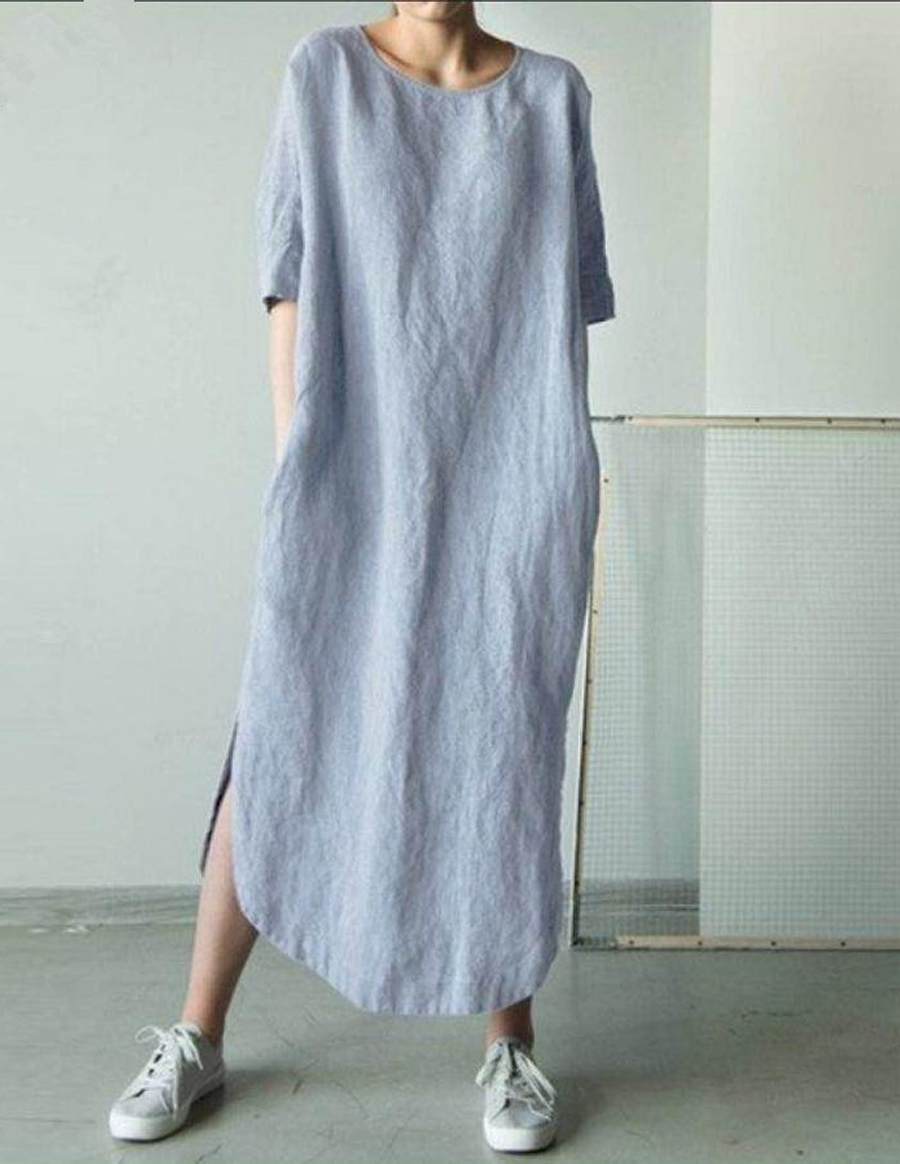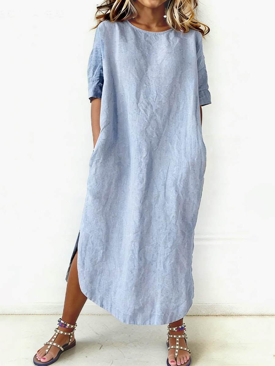 Einfaches einfarbiges Leinen-Misch kleid für Frauen$49.99 USD$94.55 USD