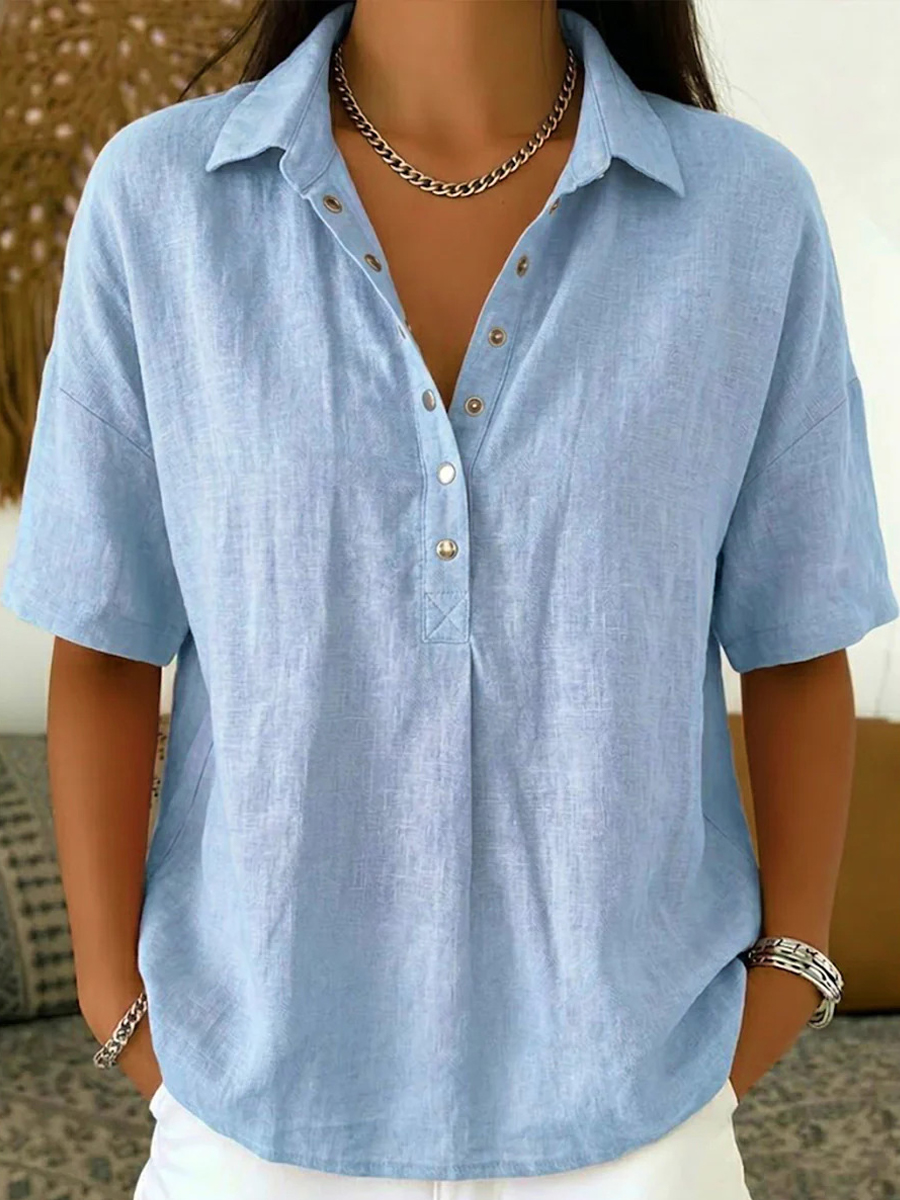 Einfaches einfarbiges Leinen mischhemd für Frauen$43.99 USD$80.36 USD