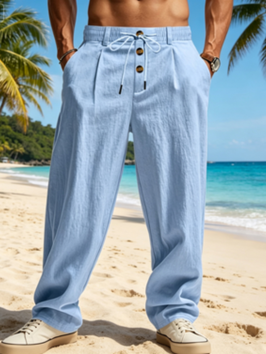 Herren-Freizeithose aus Baumwolle und Leinen$39.99 USD$75.77 USD