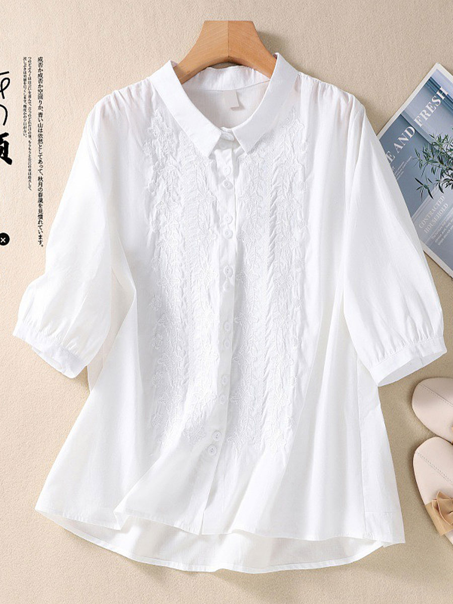Elegantes Spitzen-Patchwork-Hemd für Damen aus Leinenmischgewebe$45.99 USD$86.50 USD