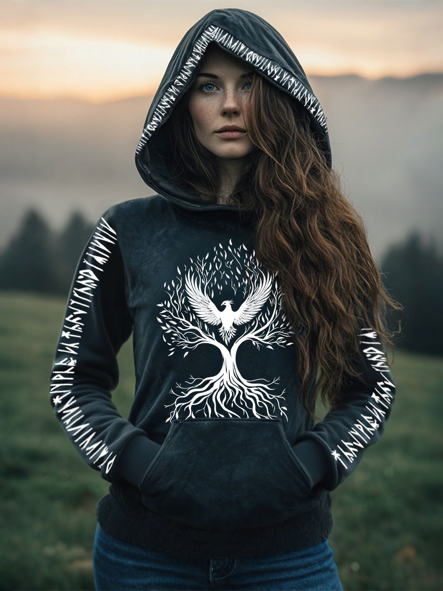 Frauen Wikinger Baum des Lebens Phönix Totem Hoodie$41.99 USD$76.84 USD