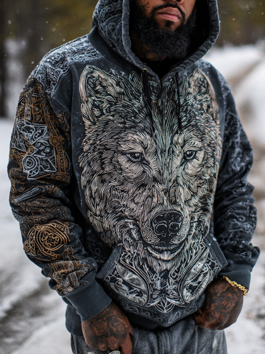 Herren Viking Celtic Wolf Muster Kunst Casual Flanell Hoodie$40.99 USD$77.25 USD
