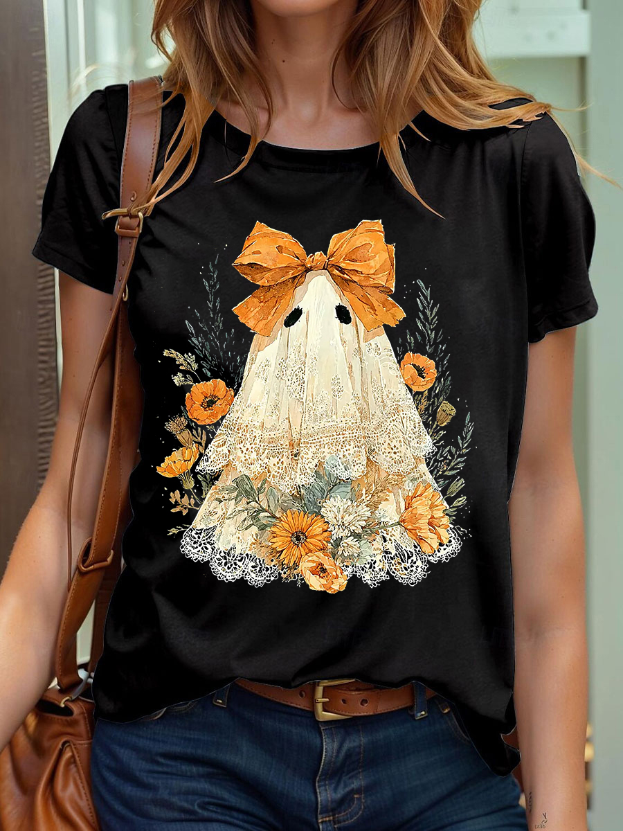Damen Halloween niedliches Spitze Ghos Print T-Shirt$22.99 USD$42.28 USD