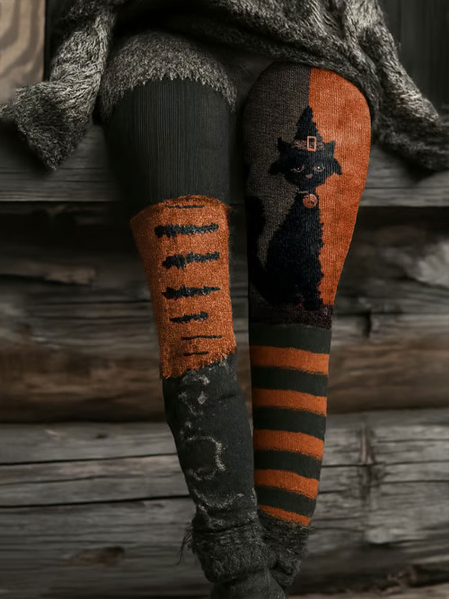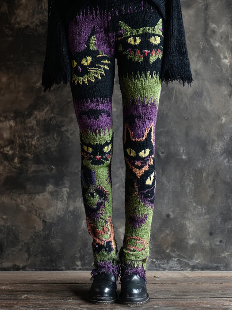 Frauen Halloween gruselige Katze bestickte Strick leggings$29.99 USD$49.99 USD