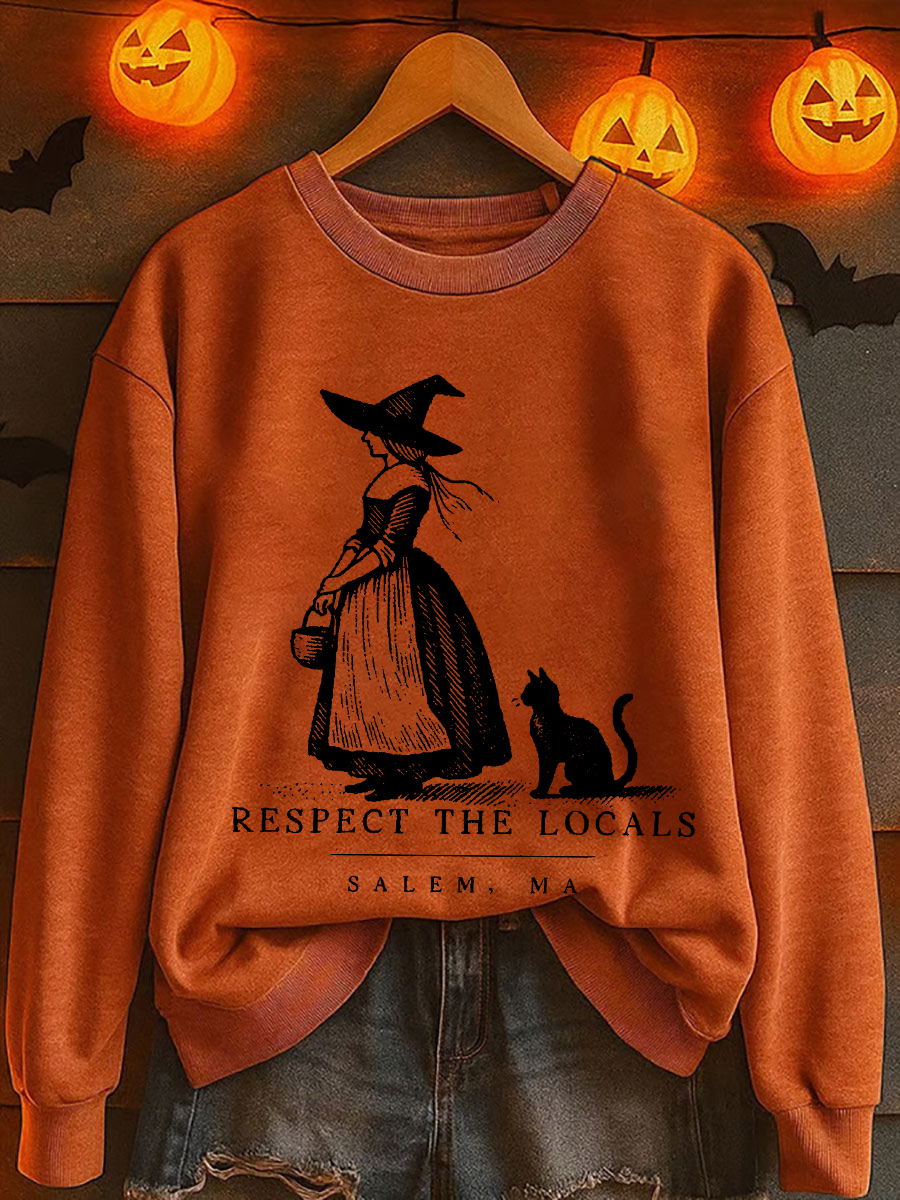 Damen Halloween Salem Ma Schwarze Katze Bedrucktes Sweatshirt$28.99 USD$54.31 USD