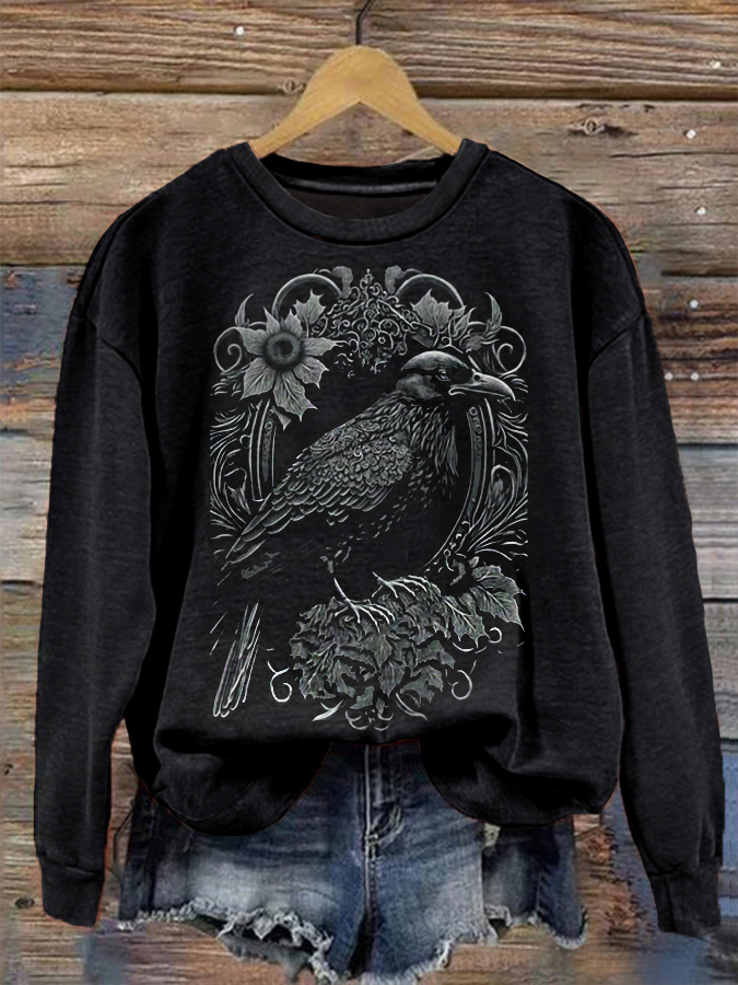 Vintage Halloween Crow Print Kunst Casual Hoodie$32.99 USD$62.57 USD