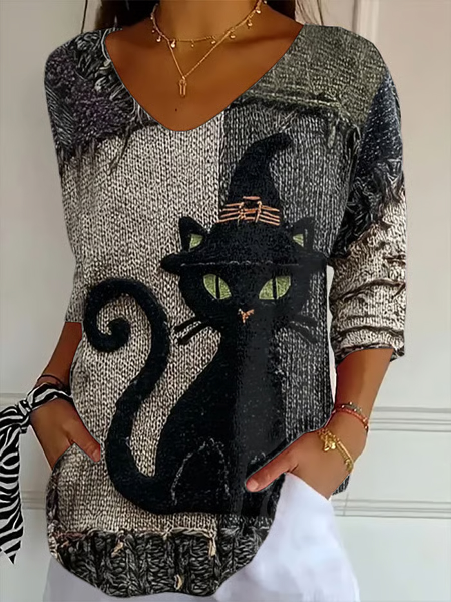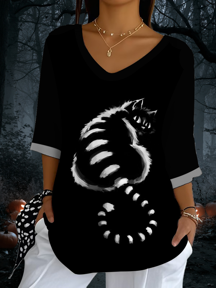 Damen-Halloween-Katzen-Print-Top$25.99 USD$47.81 USD