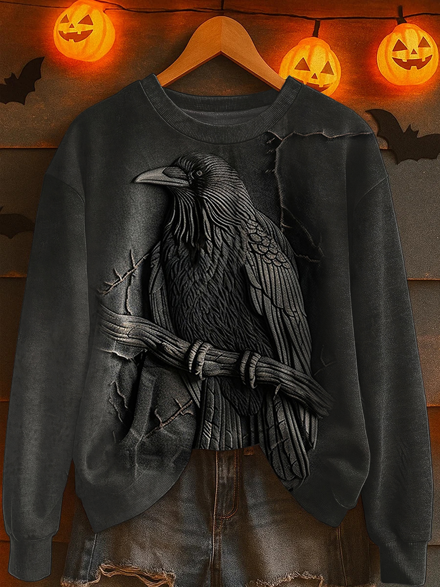 Damen Halloween 3D Gothic Crow Sweatshirt$31.99 USD$57.62 USD