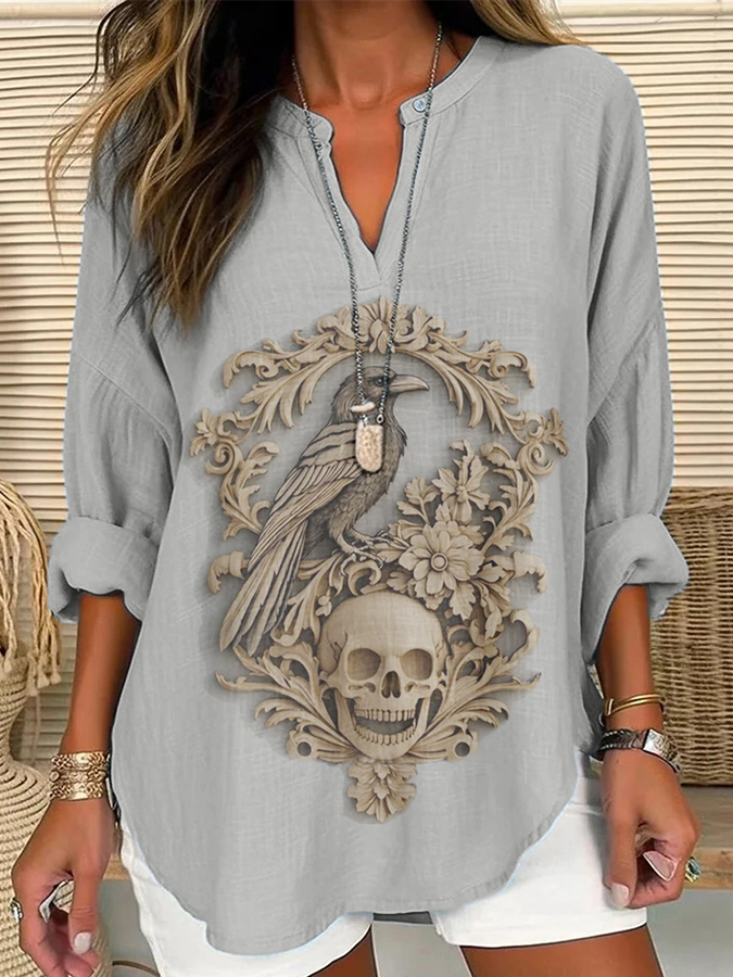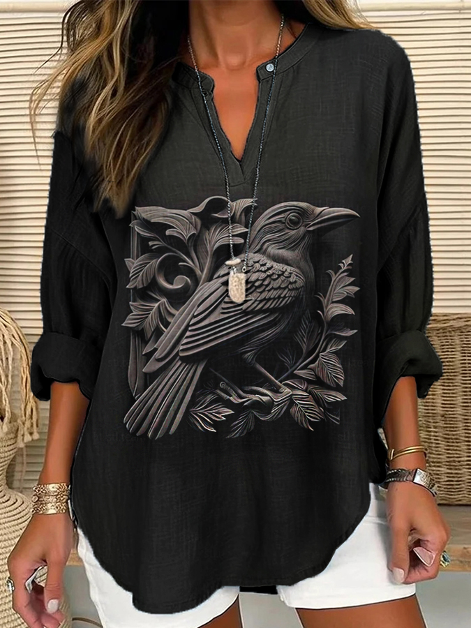 Damen Halloween 3D Gothic Crow Lässiges Langarm-Shirt$29.99 USD$56.23 USD