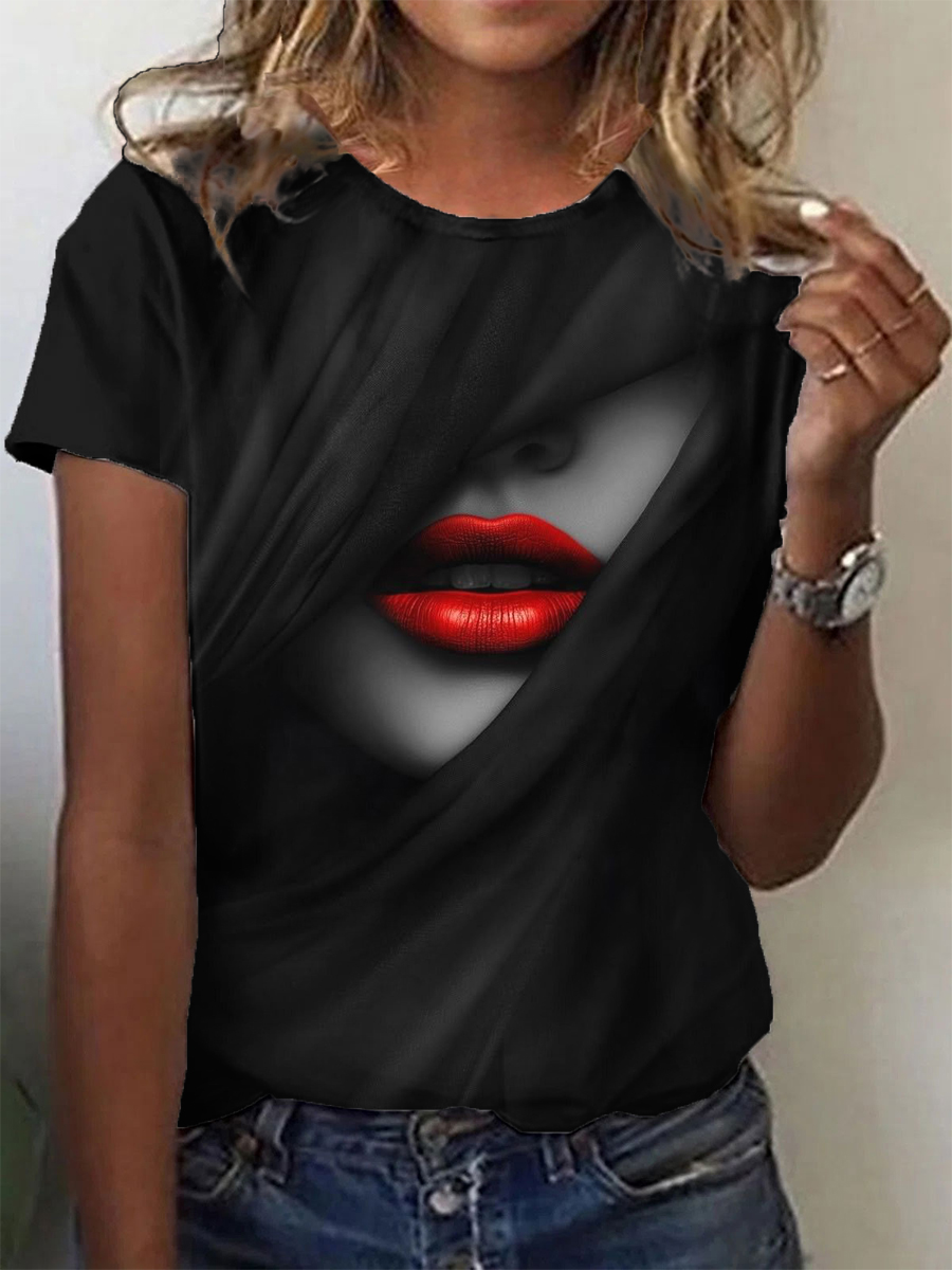 Bedrucktes T-Shirt "Ruhende Hexen gesicht" der Frauen$22.99 USD$35.69 USD