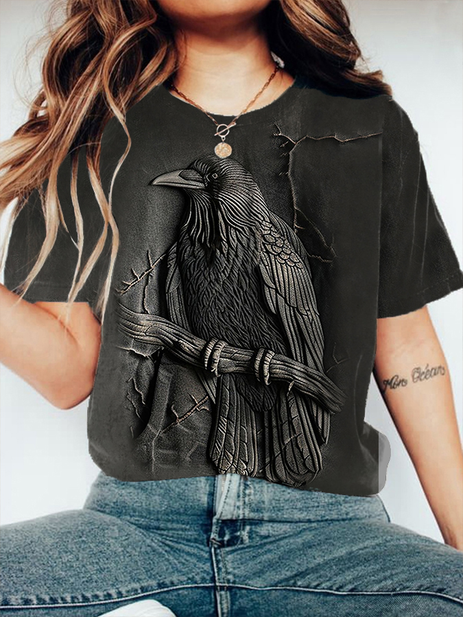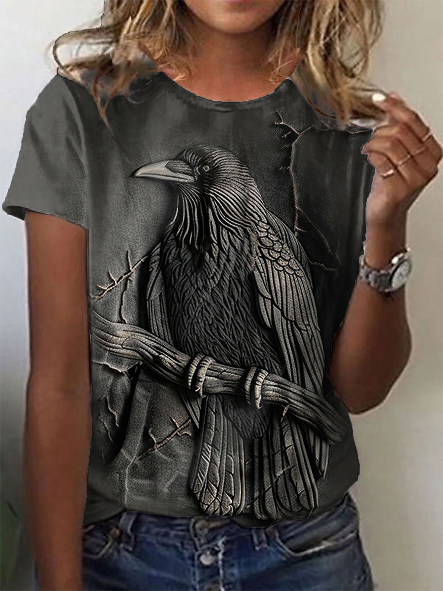 Damen Halloween Crow Kurzarm T-Shirt$22.99 USD$35.41 USD