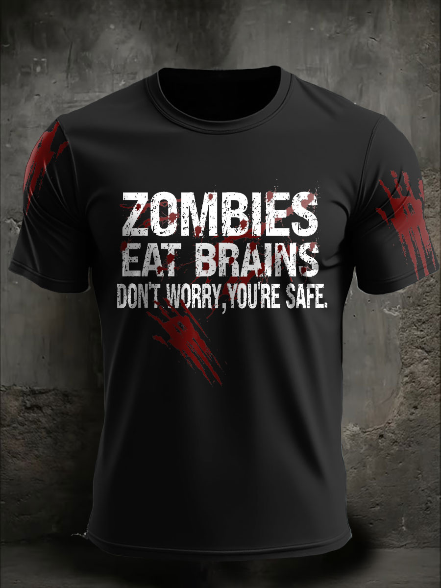 Männer Halloween Lustige Zombies Essen Gehirne Bedrucktes T-Shirt$22.99 USD$35.05 USD