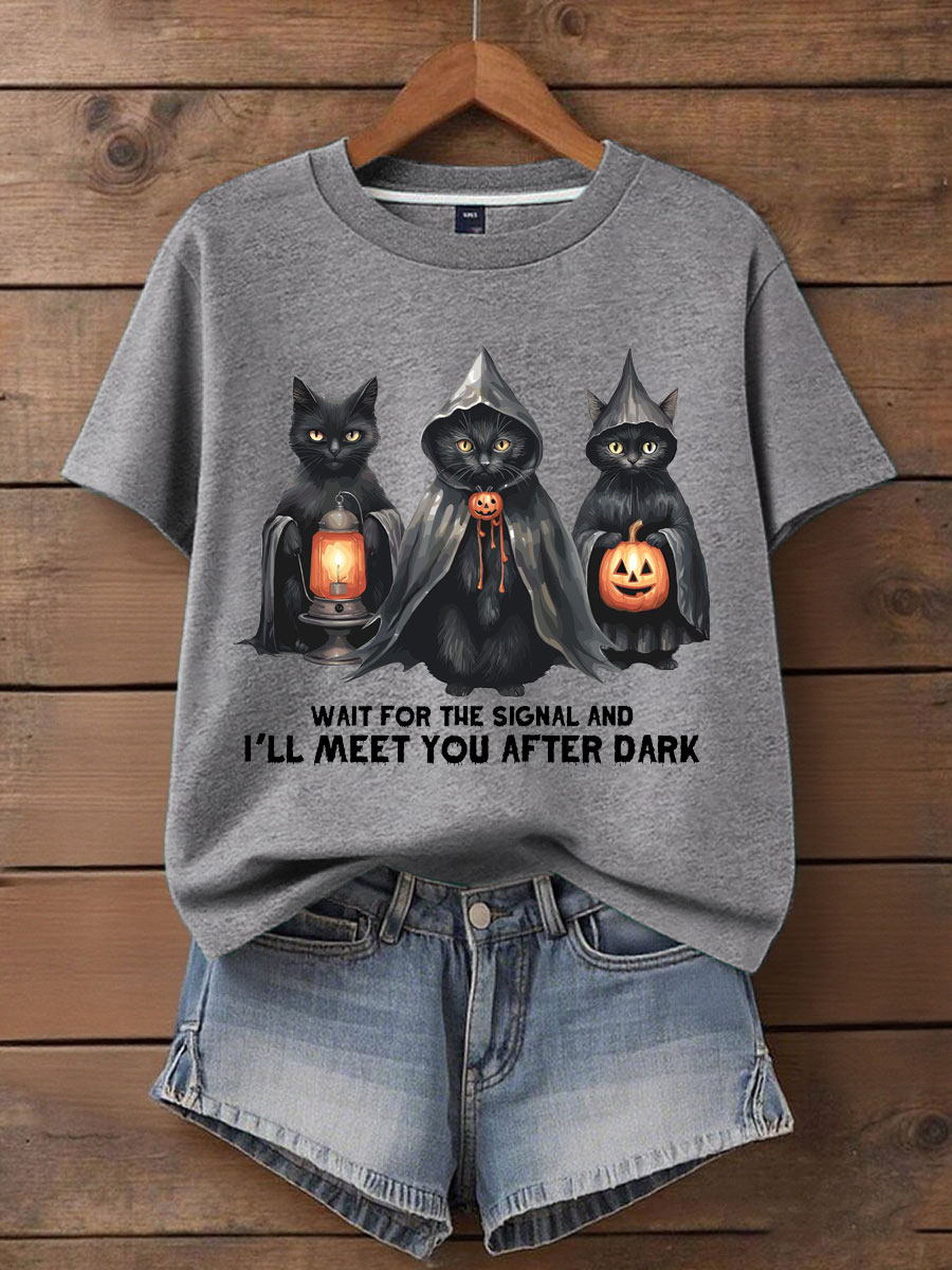 Damen Halloween Schwarze Katze Kurzarm T-Shirt$22.99 USD$36.00 USD