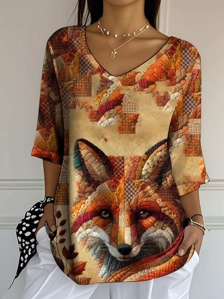 Damen Retro Herbst Patchwork Print Top$25.99 USD$48.41 USD
