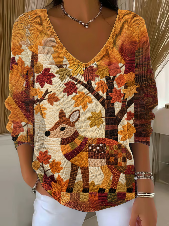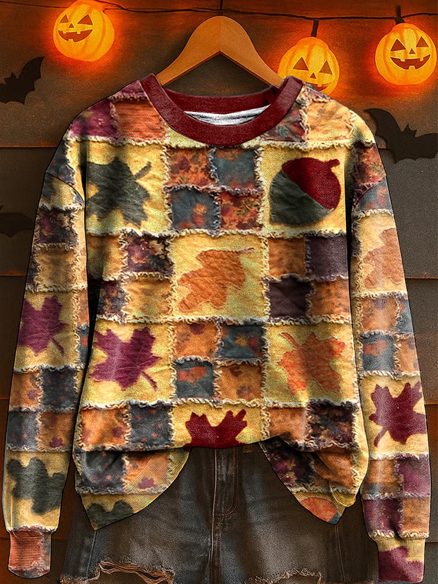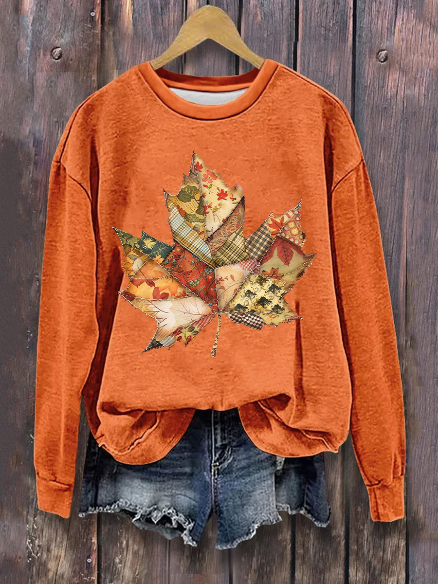 Damen Casual Retro Herbst Ahornblatt Patch Bedrucktes Sweatshirt$31.99 USD$60.07 USD