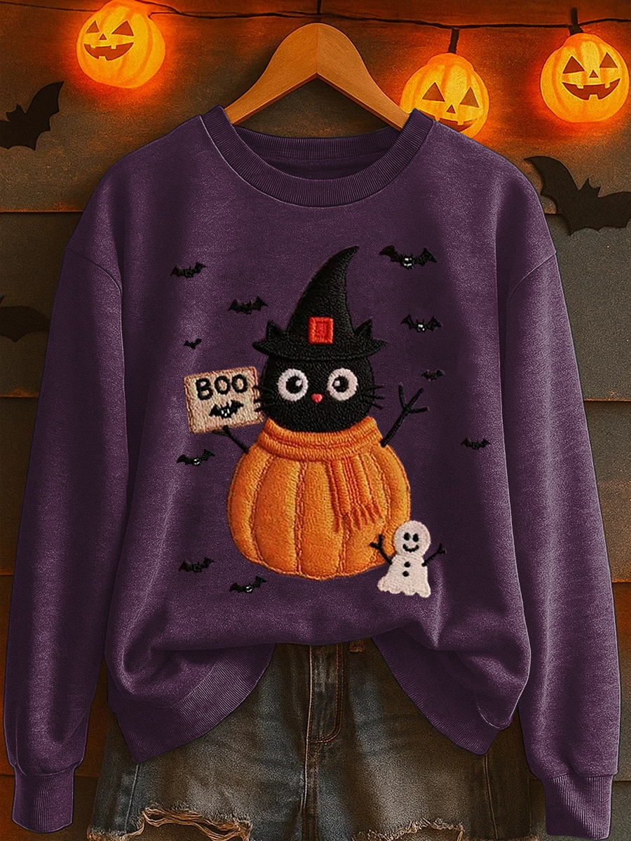Damen schwarze Katze Kürbis Print Casual Sweatshirt$31.99 USD$58.03 USD