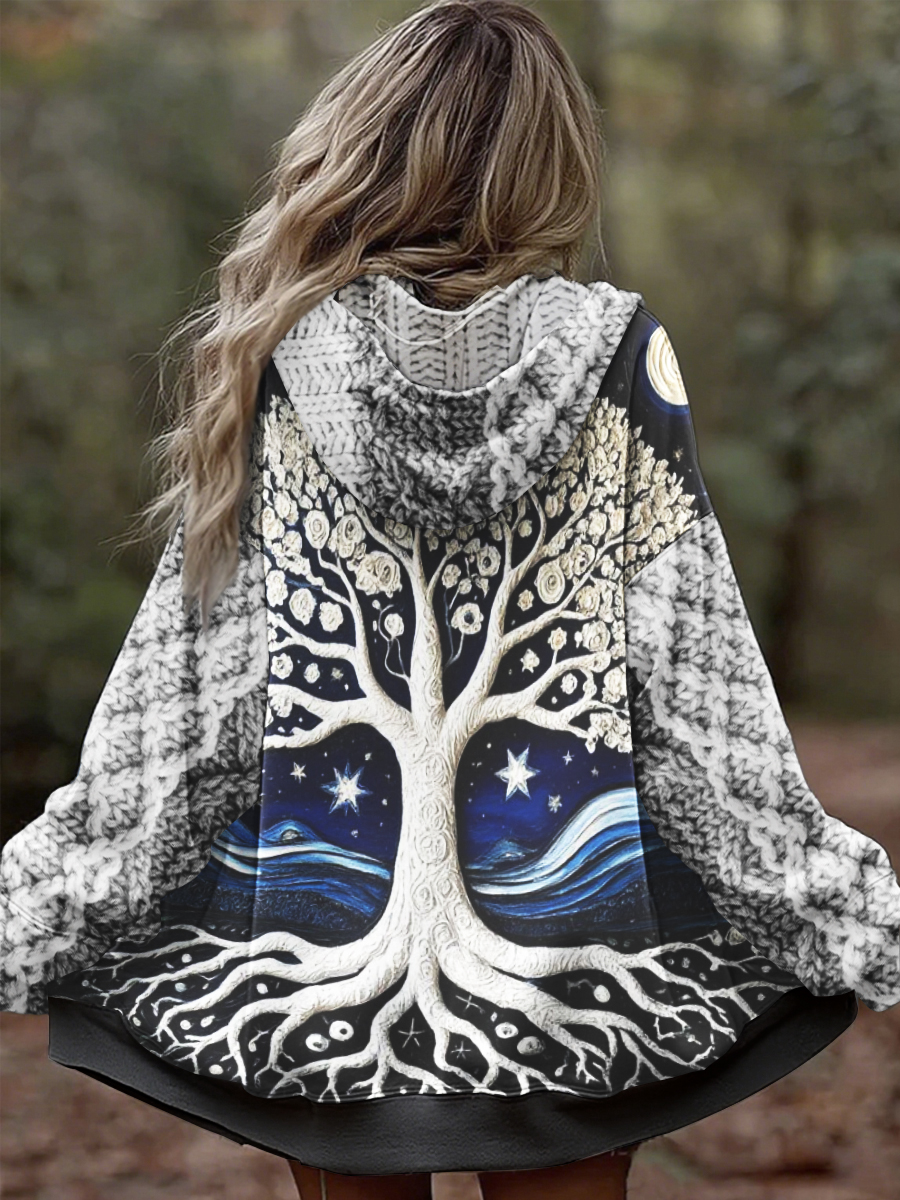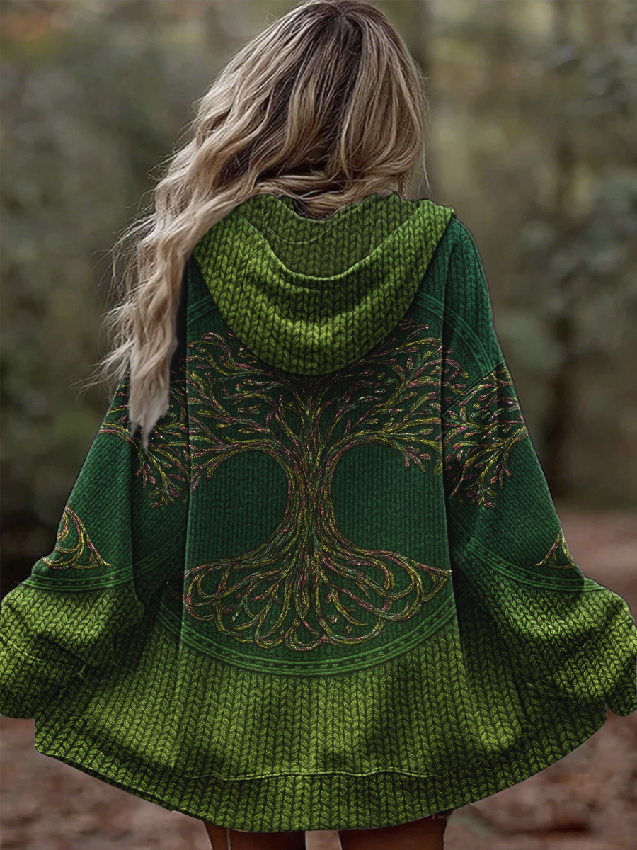 Damen Vintage Tree of Life Celtic Dick Nähte Komfortable Strick jacke mit Kapuze$38.99 USD$71.76 USD