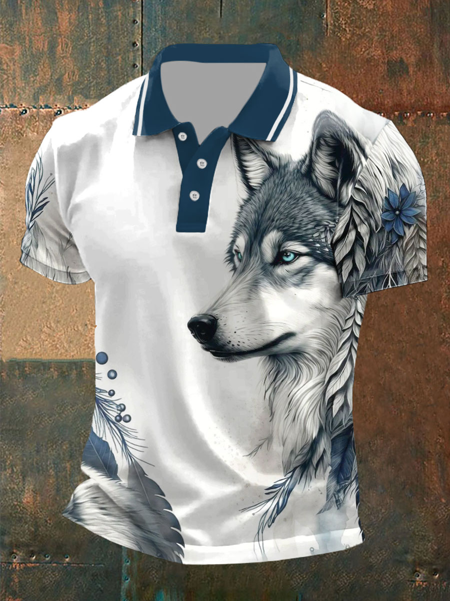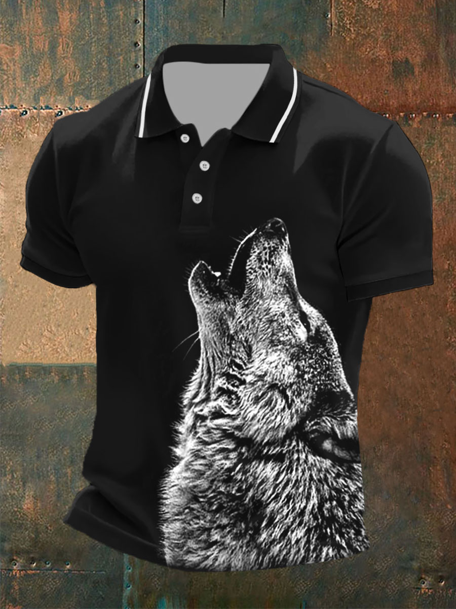 Gelegenheits oberteile mit Wolfs druck für Männer$28.99 USD$55.99 USD