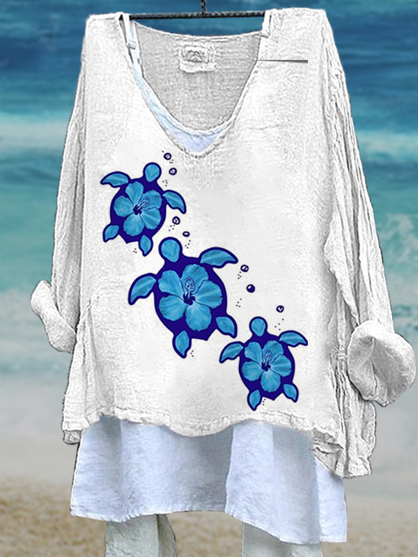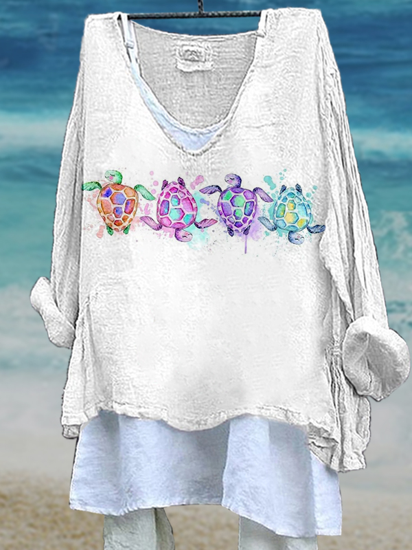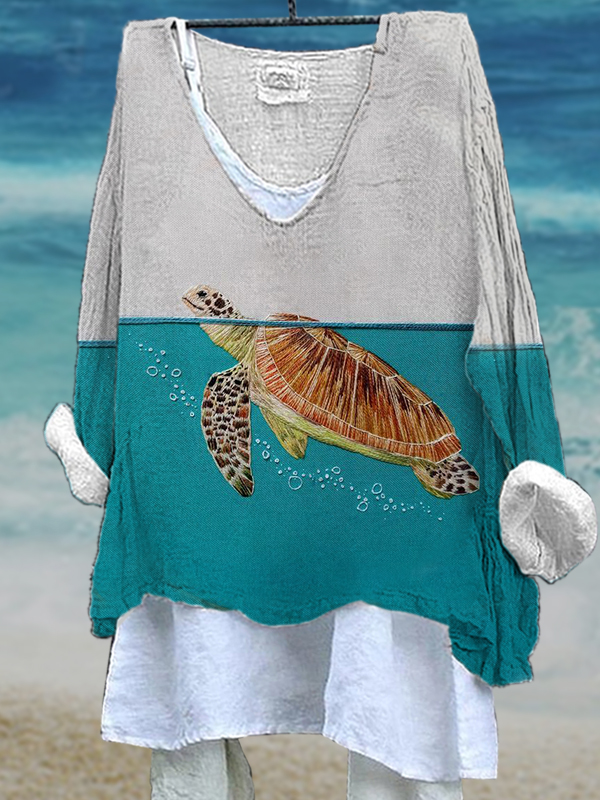 Damen-Sea Turtle Kunstdruck Leinen hemd$28.99 USD$52.10 USD