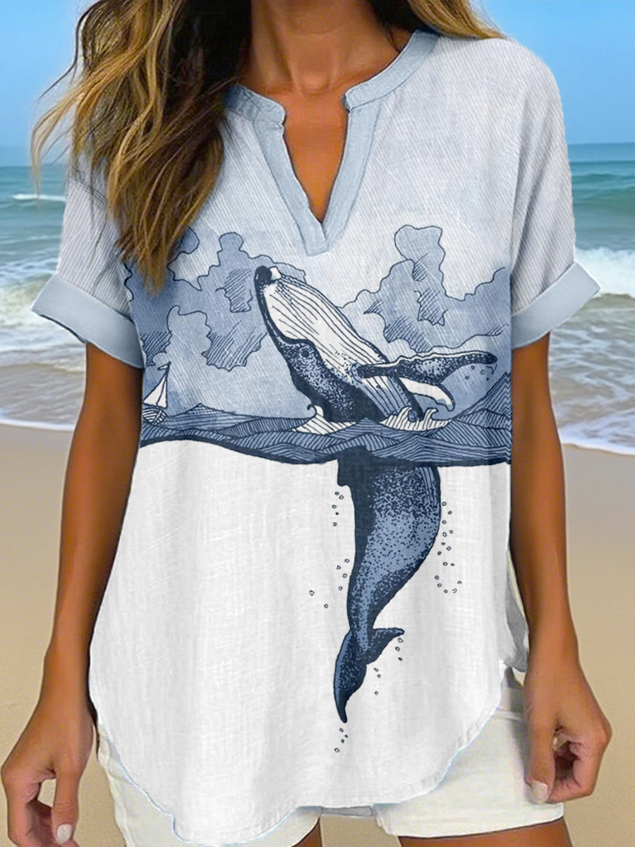 Leinen hemd mit Wal kunst druck für Frauen$28.99 USD$52.10 USD