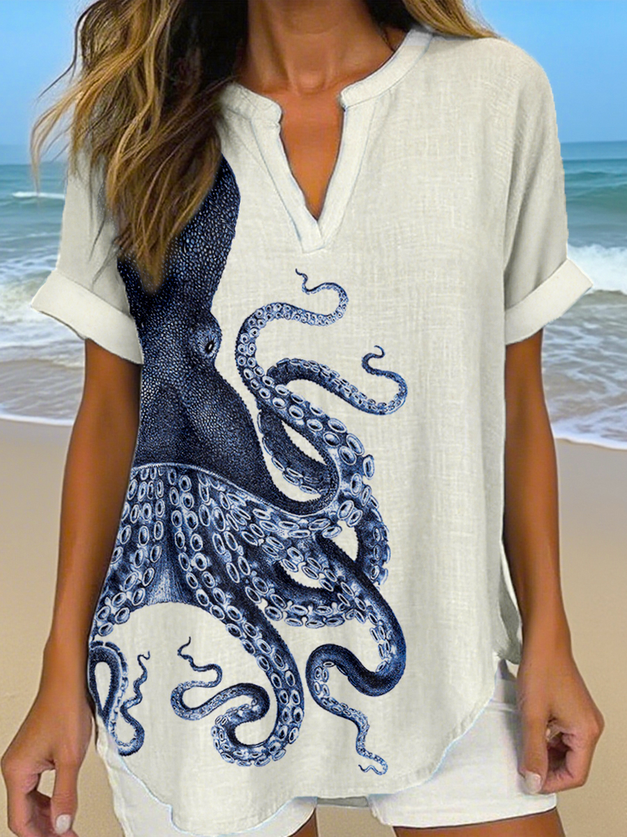 Damen Octopus Kunstdruck Leinen hemd$28.99 USD$52.10 USD