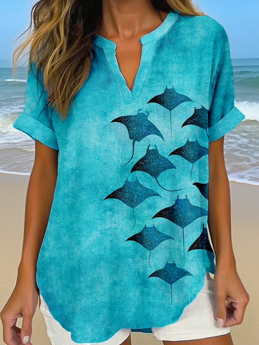 Damen Manta Strahlen Kunstdruck Leinen hemd$28.99 USD$52.22 USD