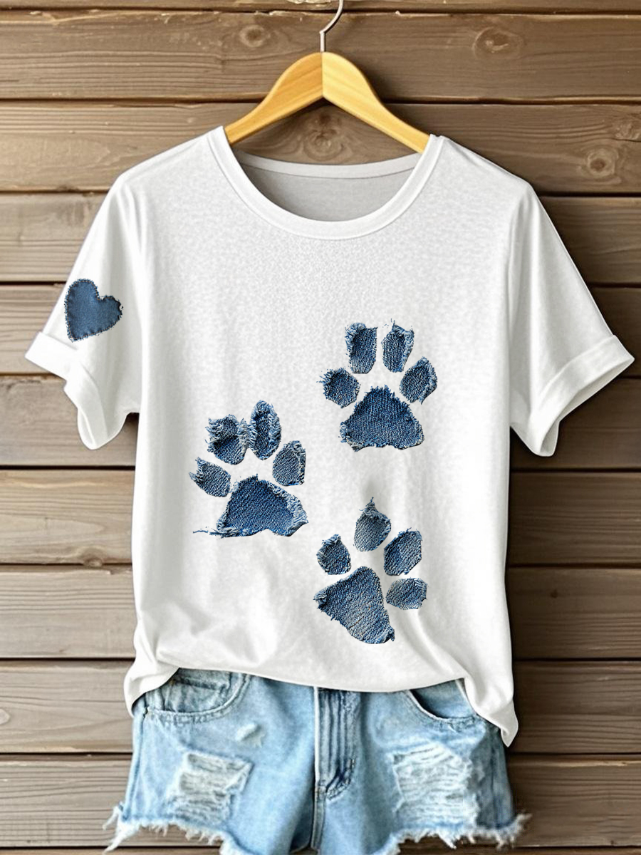 Damen-Hunde-Pfote bedrucktes lässiges T-Shirt$22.99 USD$39.99 USD