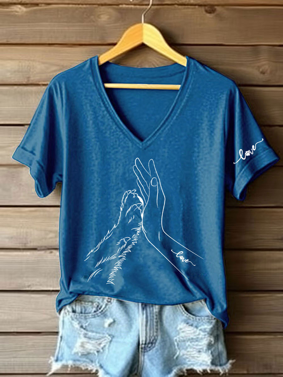 Damen-Pfote und hand bedrucktes lässiges T-Shirt$22.99 USD$39.99 USD