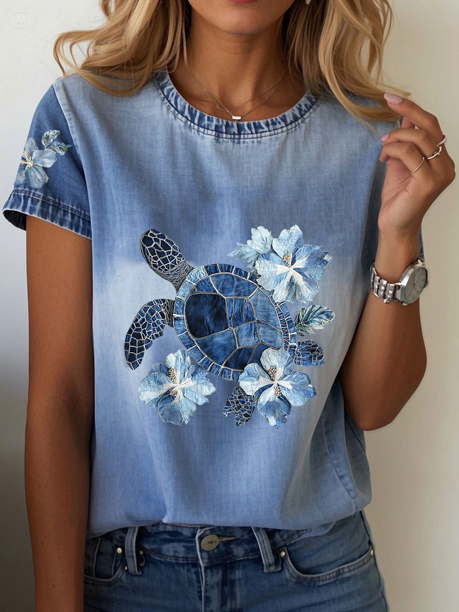 Damen-Blumen schildkröten druck lässig T-Shirt$22.99 USD$39.99 USD