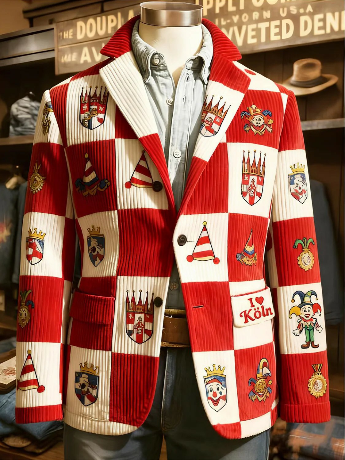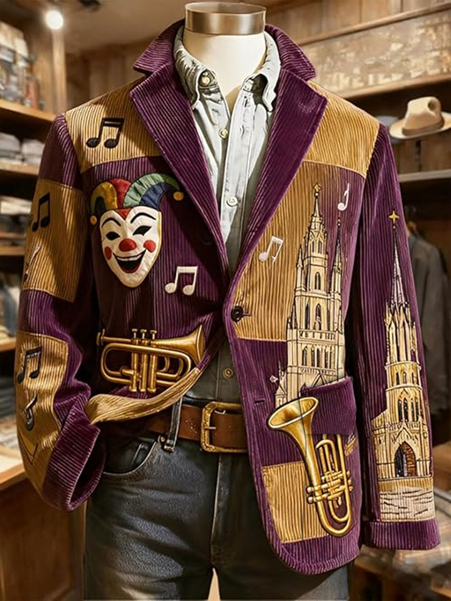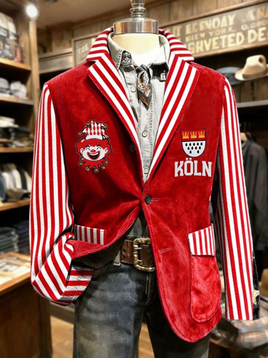 Herren Cologne Carnival Print Cord Freizeit jacke$68.99 USD$127.39 USD