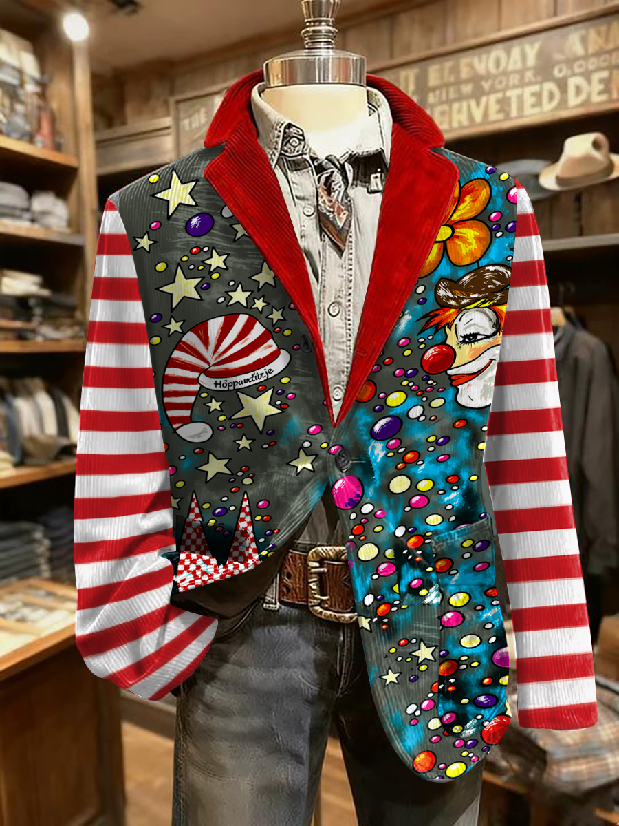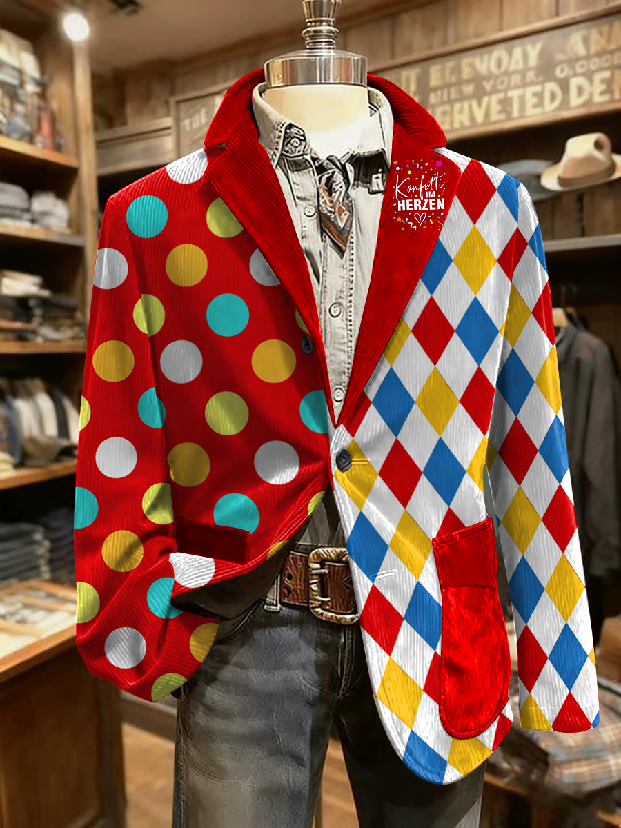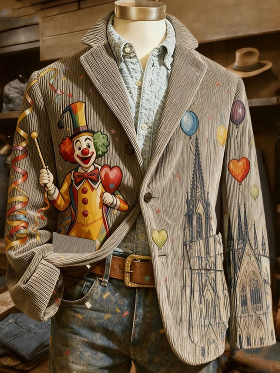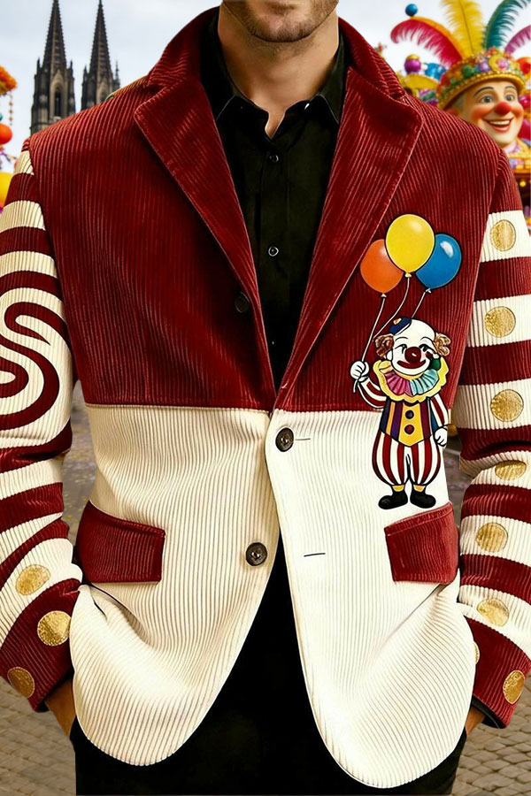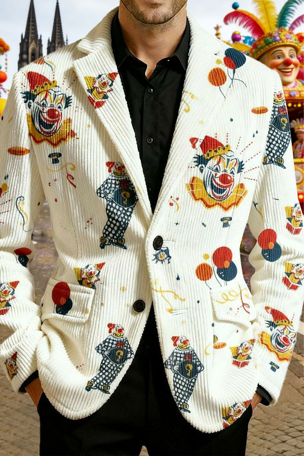 Cologne Carnival Clown Print Herren lässig Ansteckanzug$68.99 USD$129.76 USD
