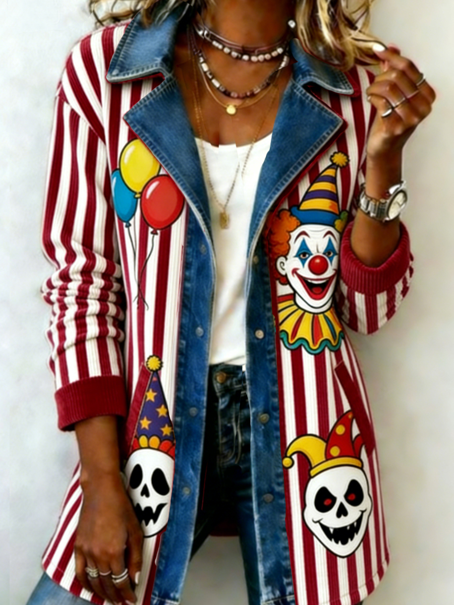 Herren Cologne Carnival Clown Print Plüsch-Ständer kragen hemd$47.99 USD$87.85 USD