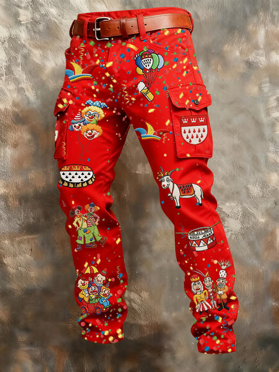 Herren Kölner Karnevals Bedruckte bequeme Hose$49.99 USD$90.83 USD