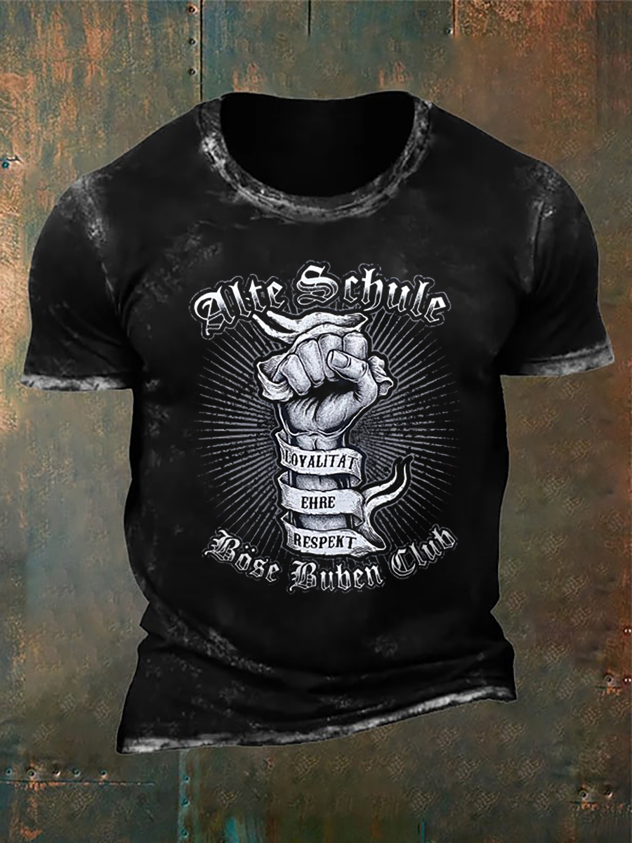 Bedrucktes Kurzarm-T-Shirt für Männer Alte Schule$22.99 USD$39.99 USD