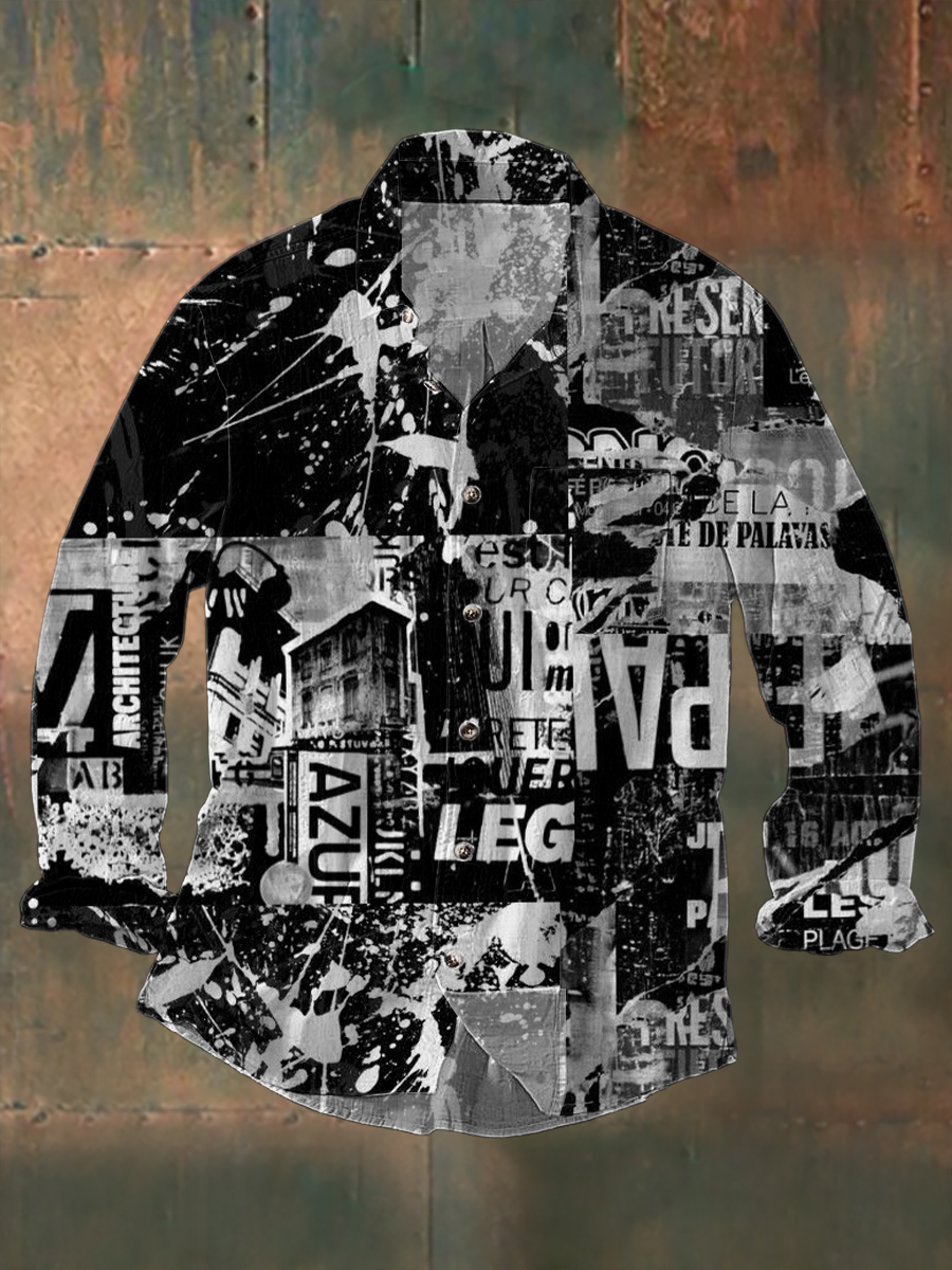 Herren Graffiti Kunstdruck Lässiges Langarm-Hemd$44.99 USD$82.98 USD
