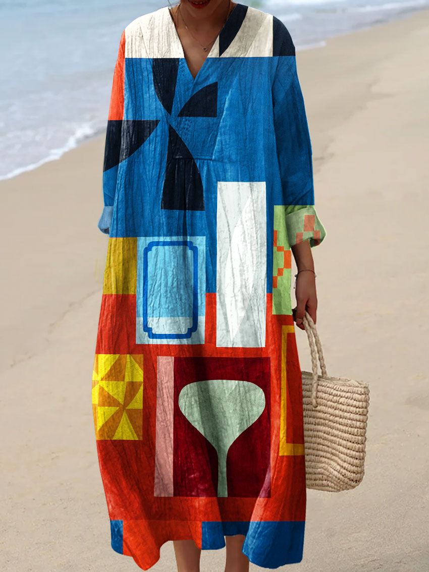 Abstraktes geometrisches Farbblock-Linien-Kunstdruck kleid für Damen
