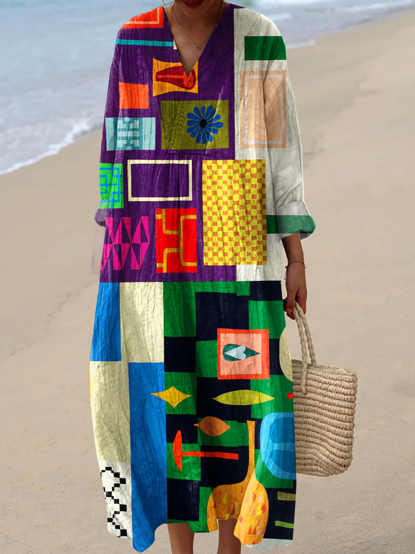 Abstraktes geometrisches Farbblock-Linien-Kunstdruck kleid für Damen