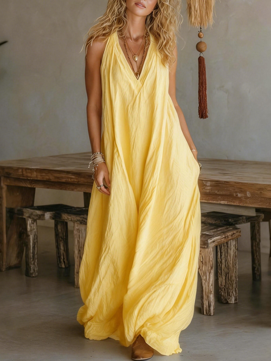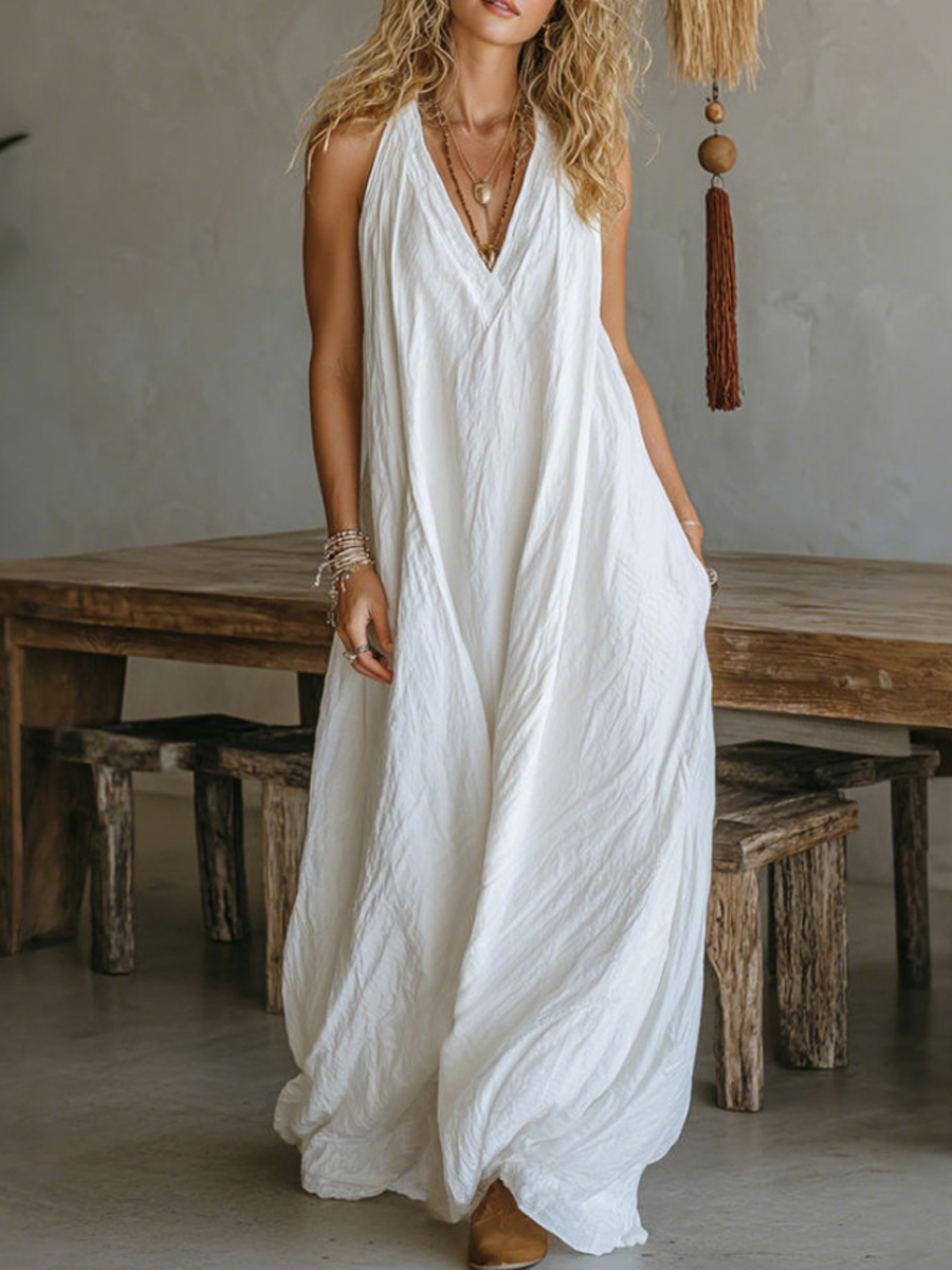 Ärmelloses, lockeres Taschen kleid aus Baumwolle für Damen