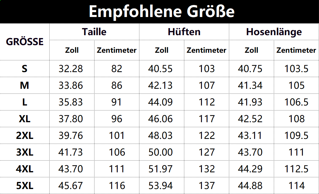 Größen tabelle: