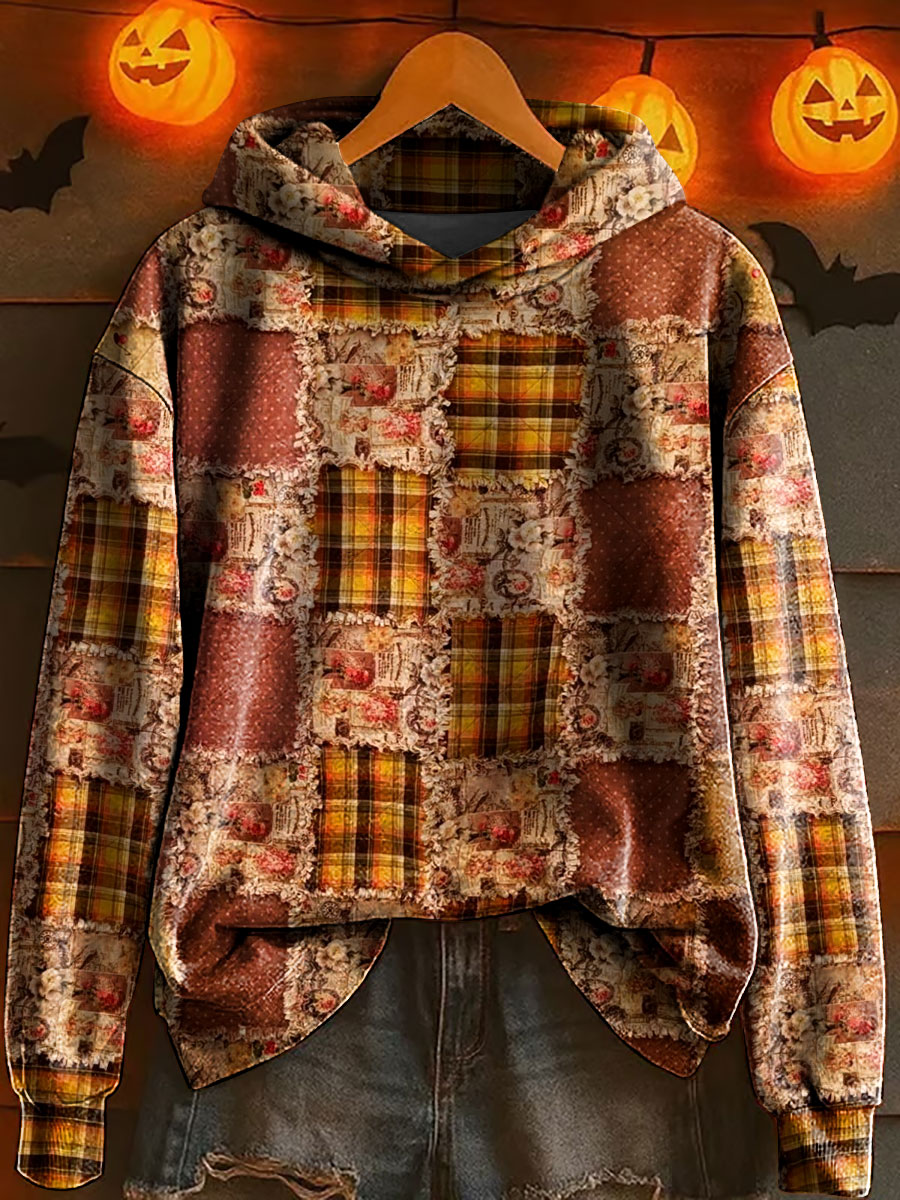 Damen Casual Retro Herbst Kürbis Ahornblatt Patch Sweatshirt