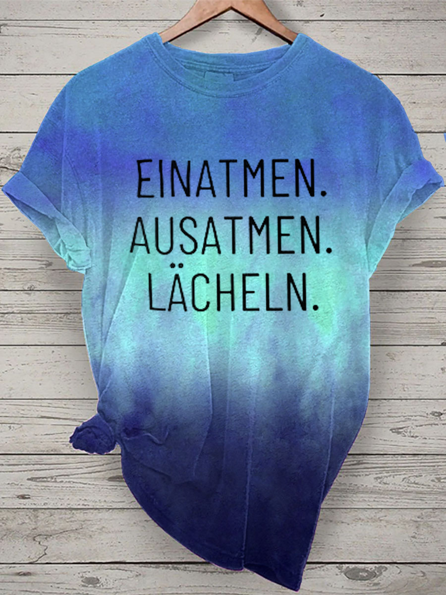 Damen Einatmen Ausatmen Laecheln Tie Dye Print Kurzarm T-Shirt