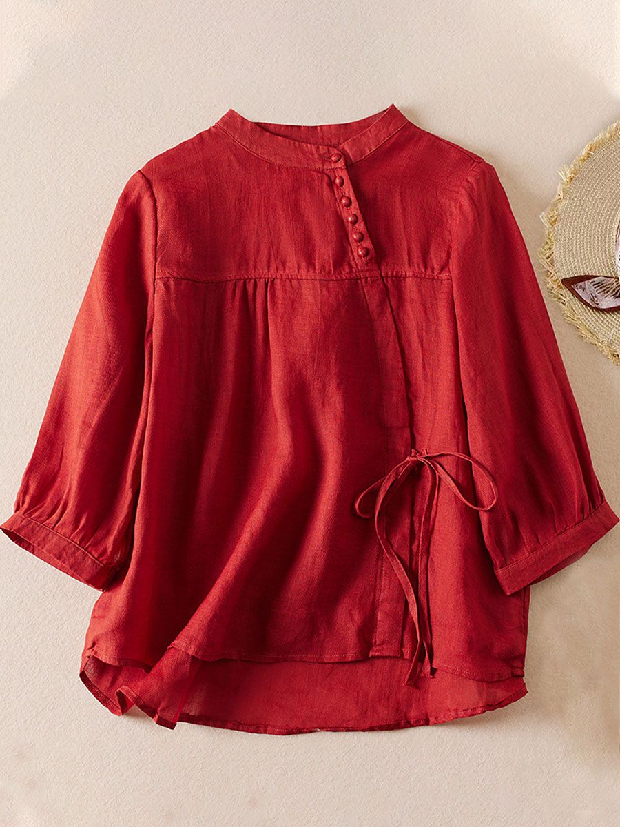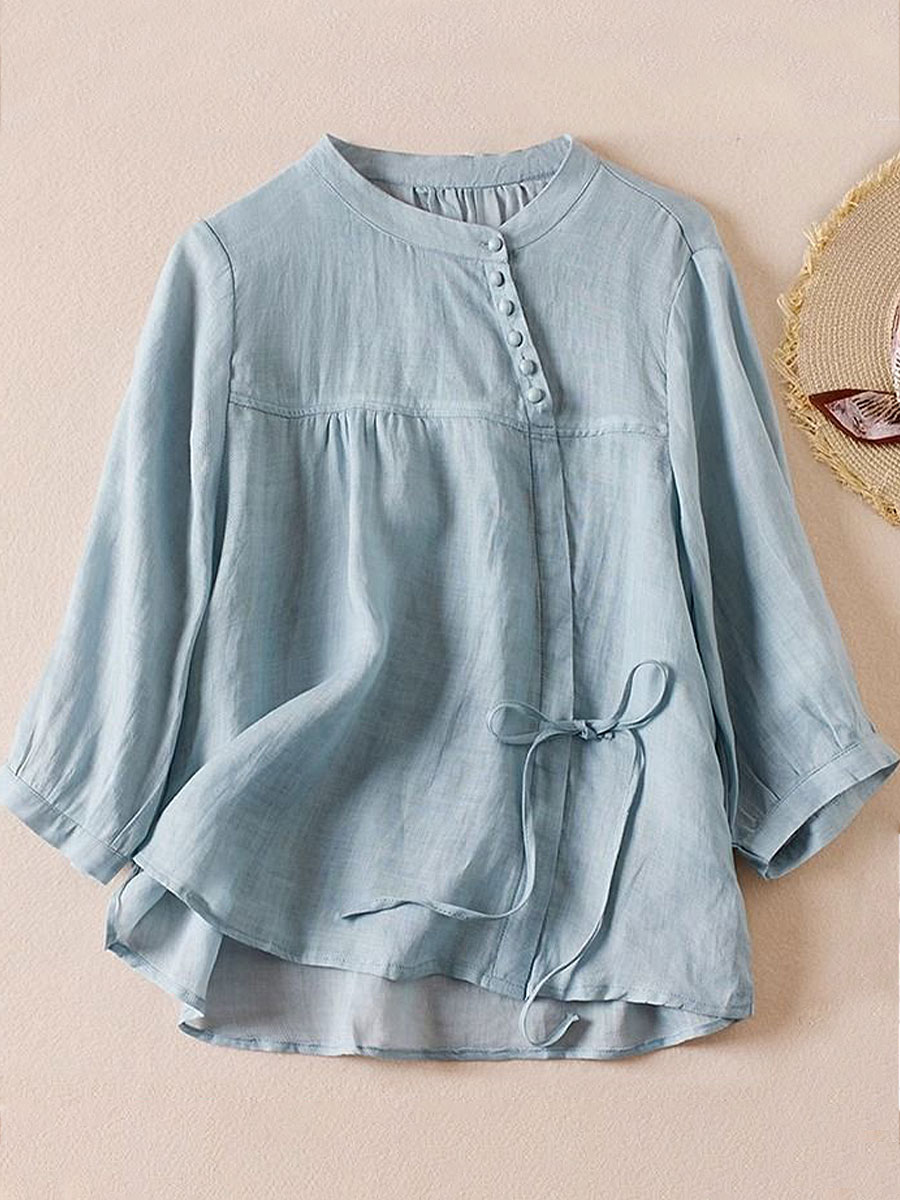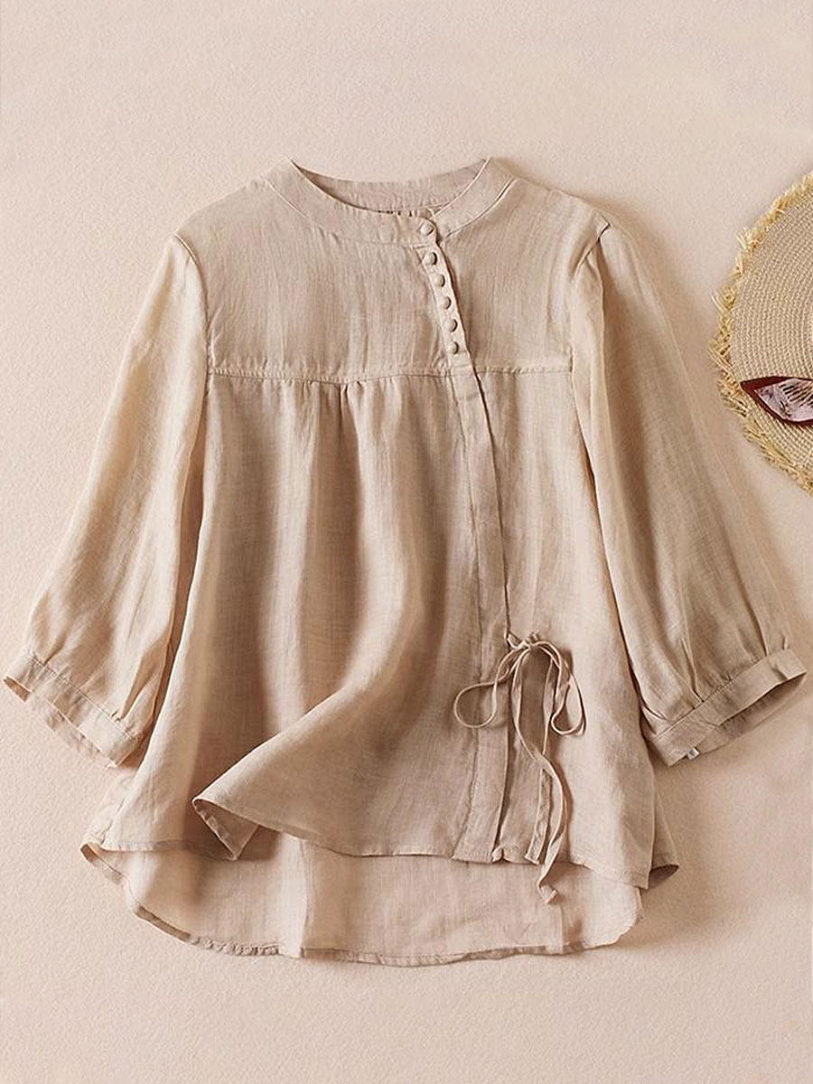 Damen einfarbige Baumwoll-und Leinen hemden
