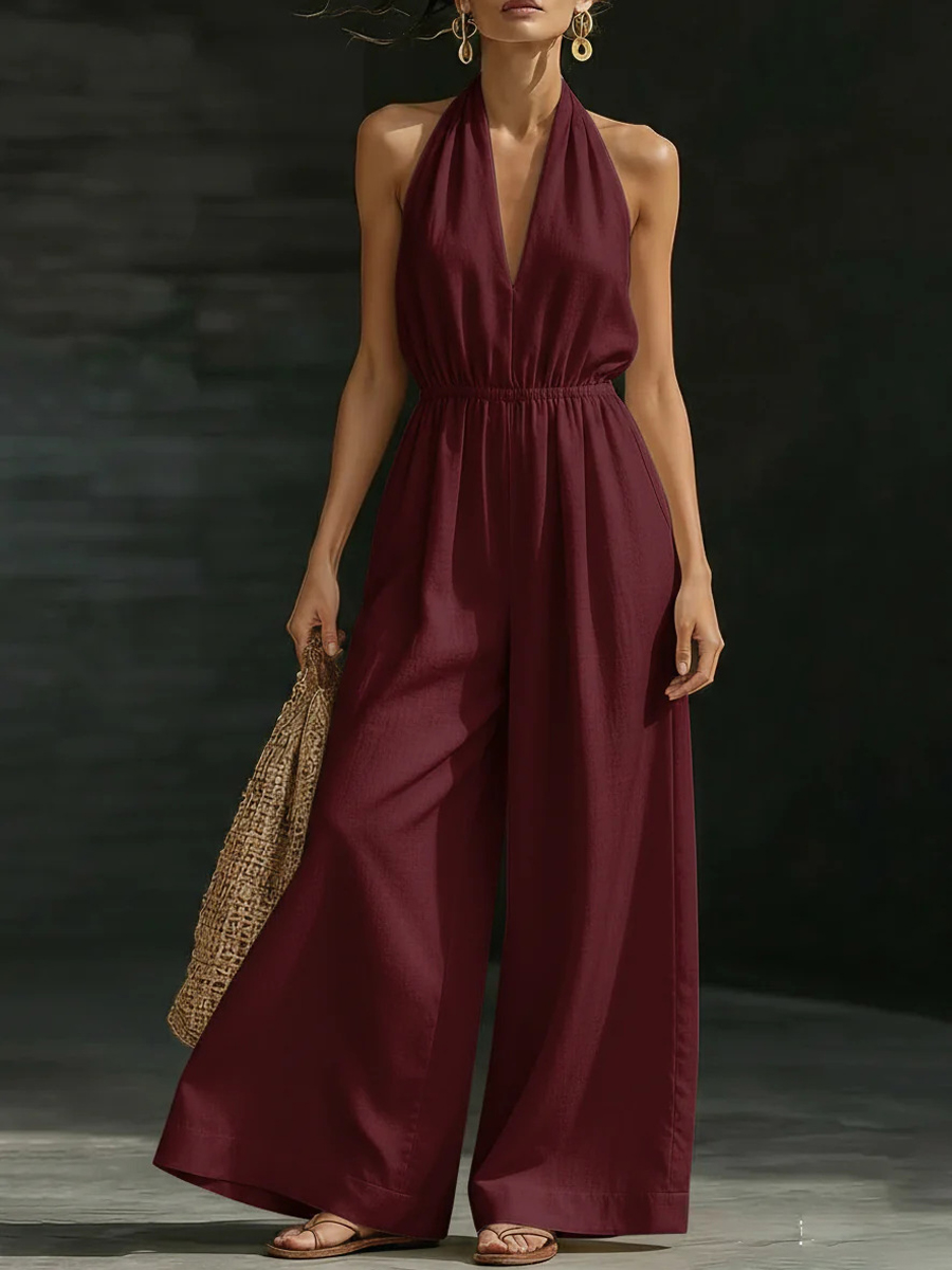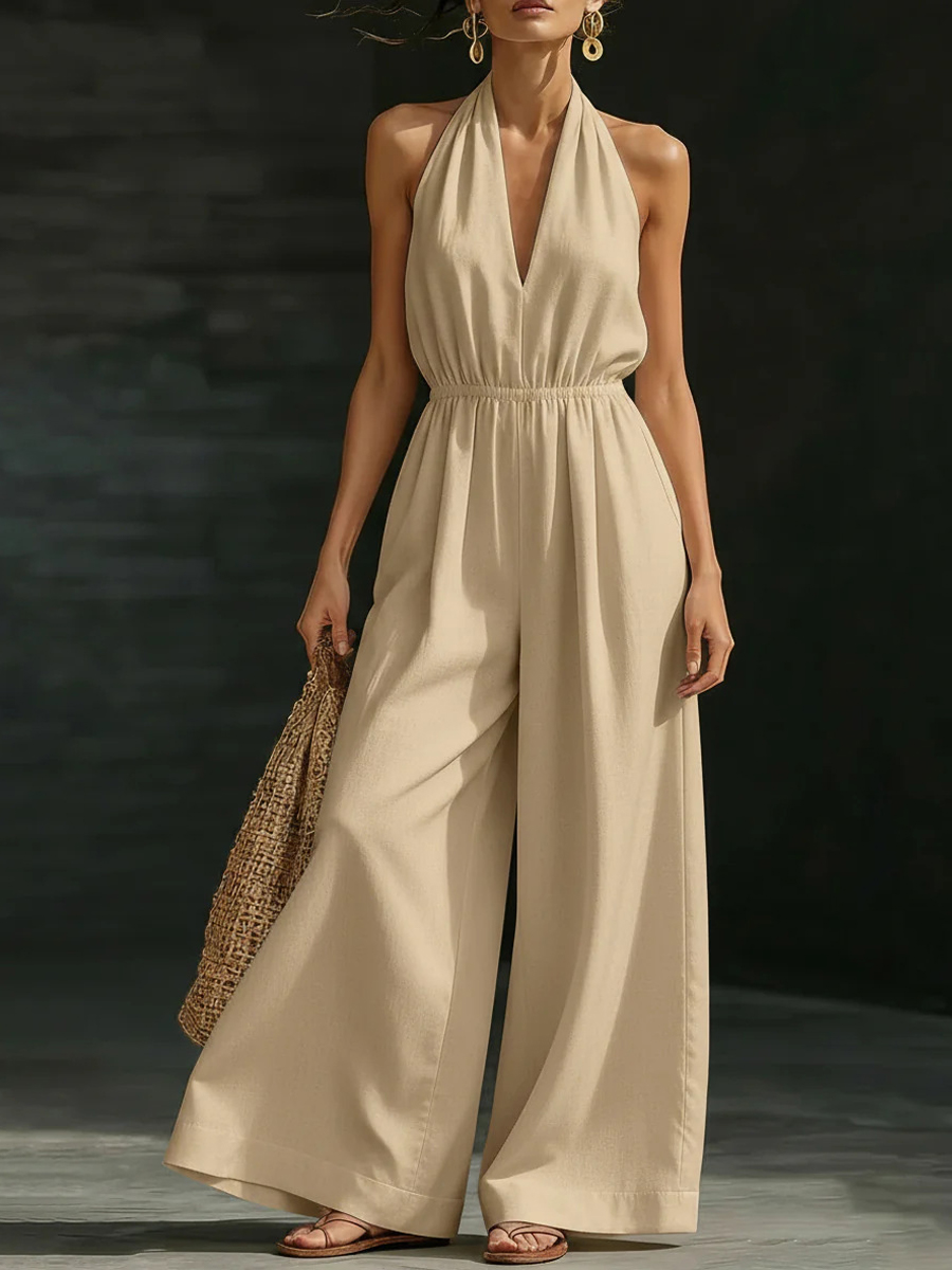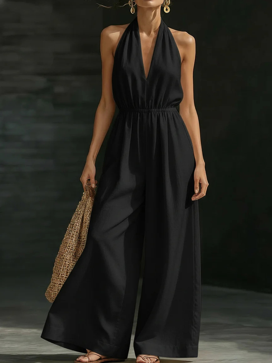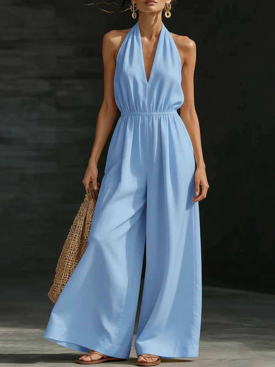 Damen Freizeit Einfarbig V-Ausschnitt Trägerloses rückenfreies Jumpsuit