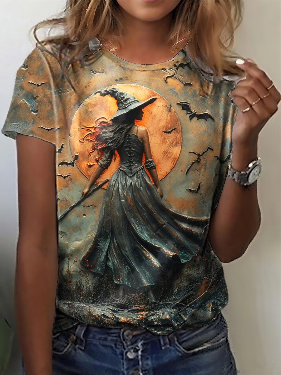 Damen Halloween Retro Hexe Print T-Shirt