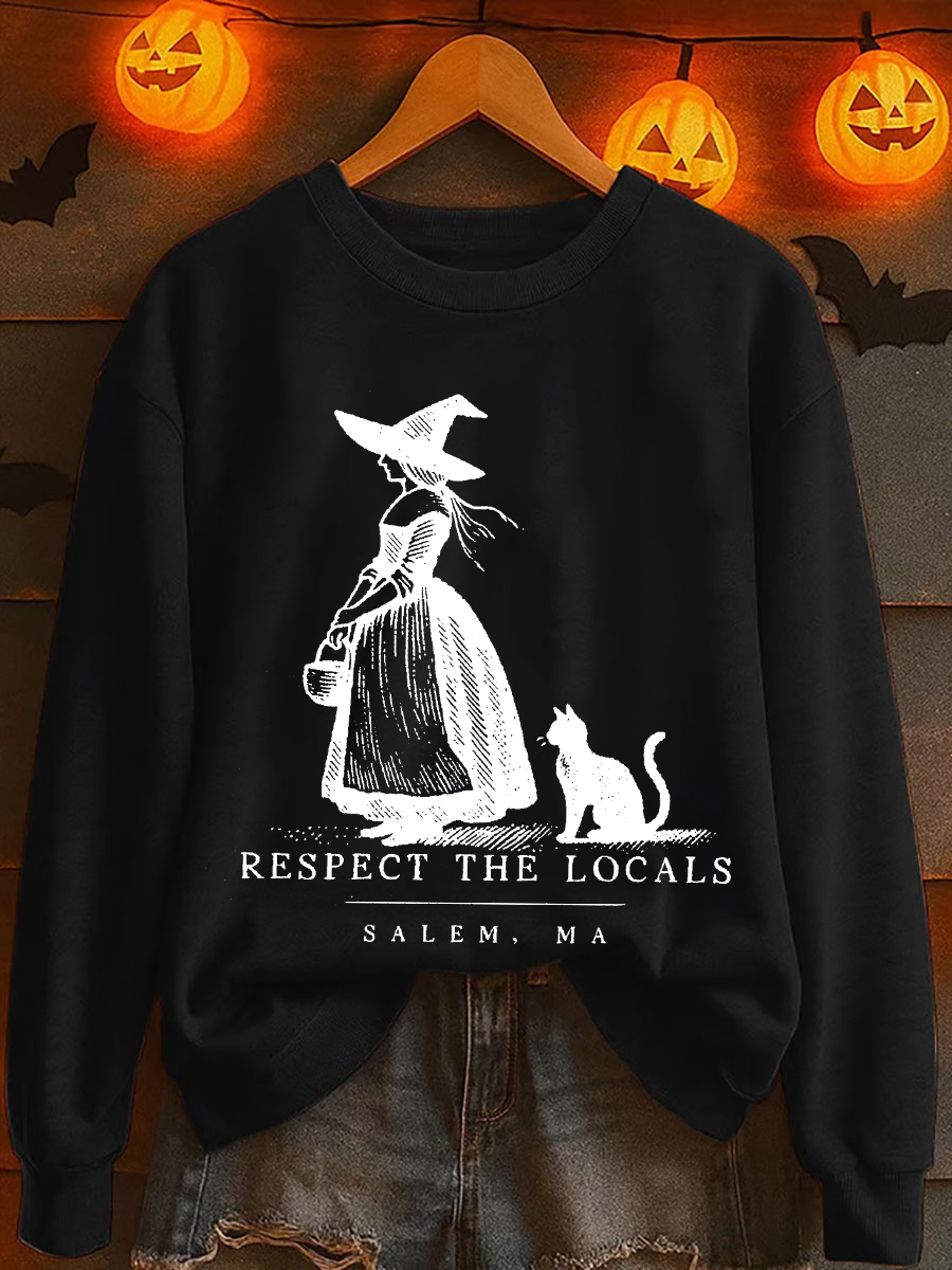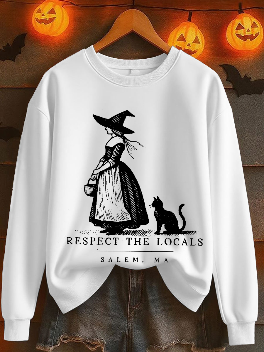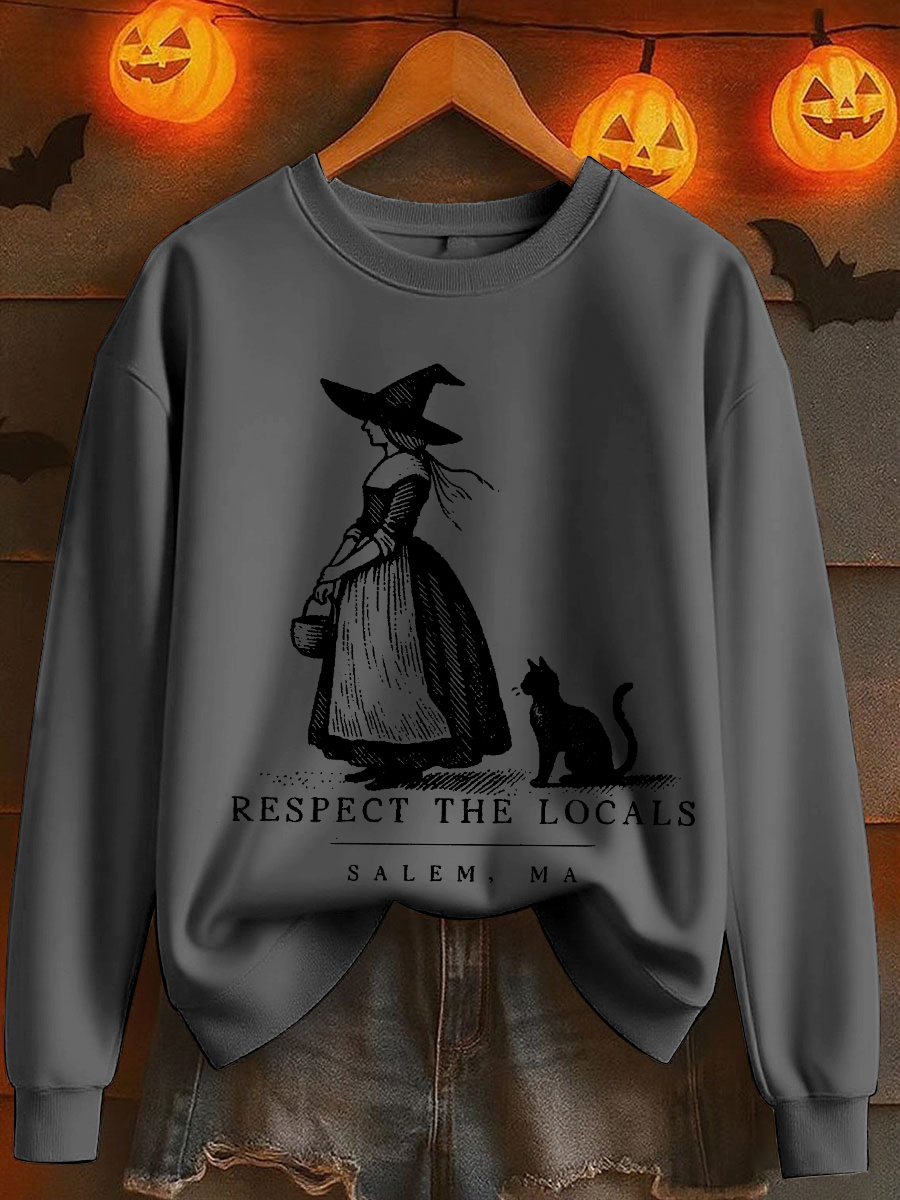 Damen Halloween Salem Ma Schwarze Katze Bedrucktes Sweatshirt