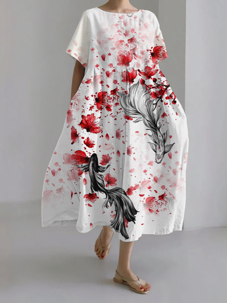 Damen japanische Kunst lässige Kurzarm kleider