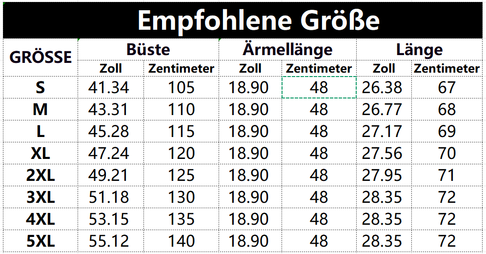 Größen tabelle: